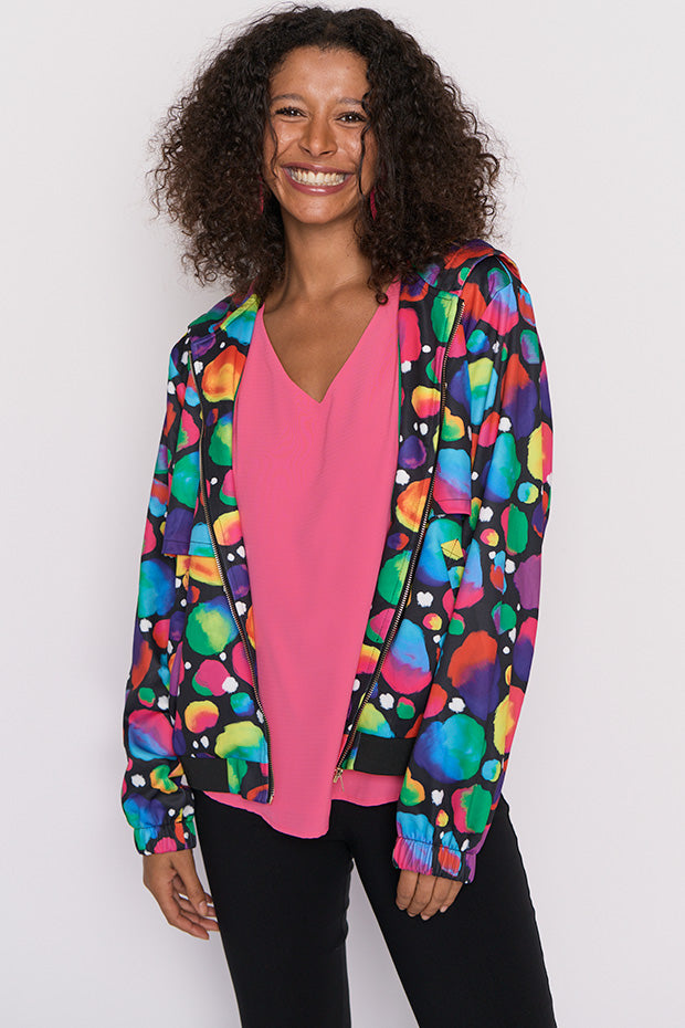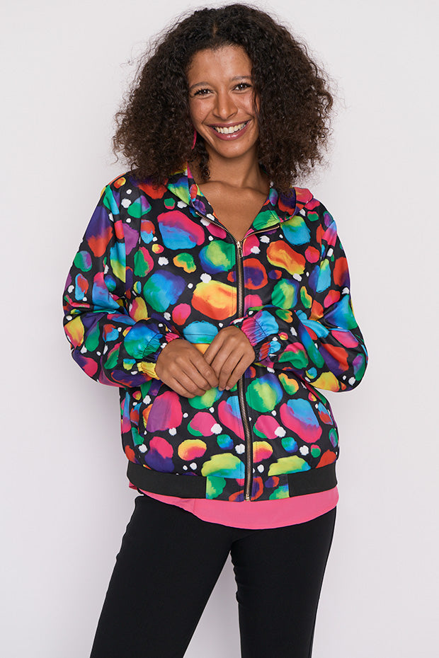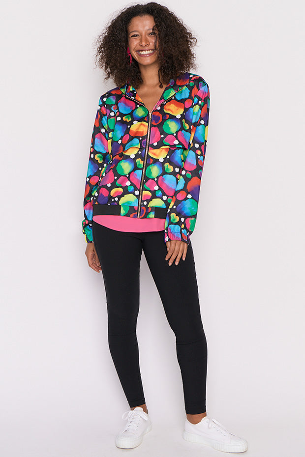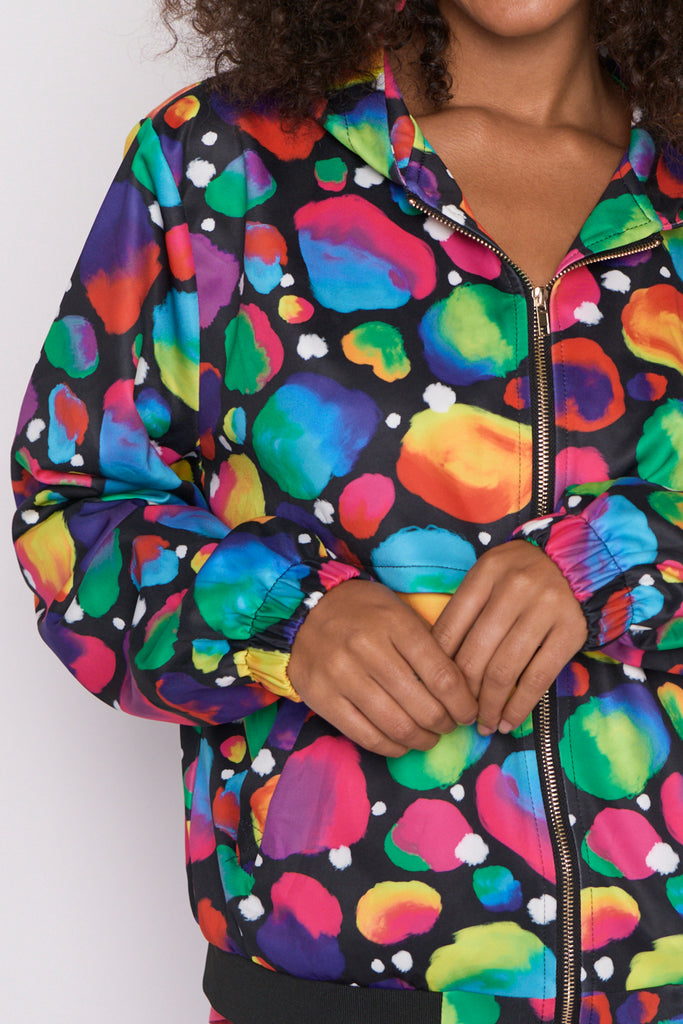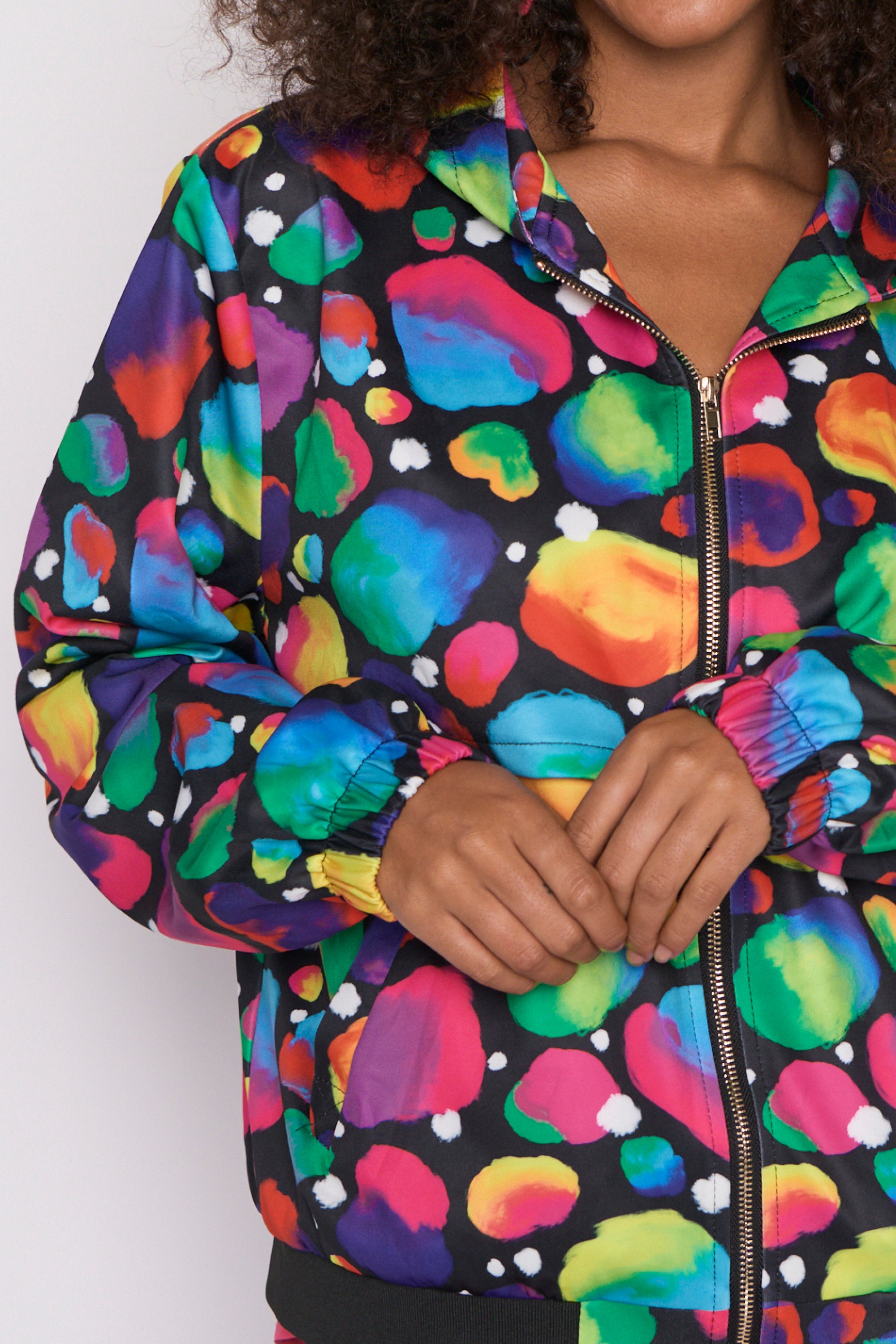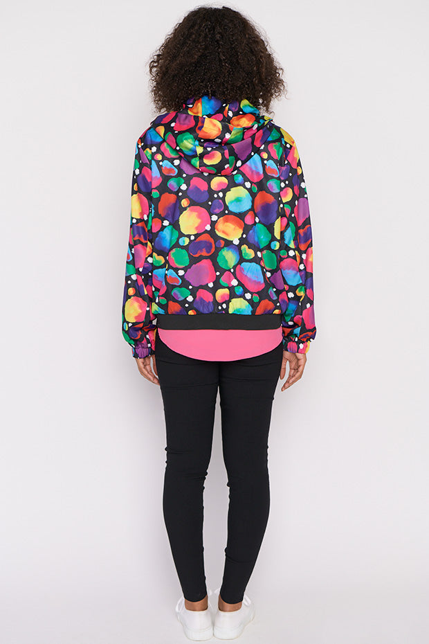 Featuring an elastic hem with a sporty retro stripe, a front zipper and relaxed hood. Including flattering anorak panels on the front, long sleeves with elastic cuffs that can be pushed up and insanely useful front pockets for your phone and lip gloss.