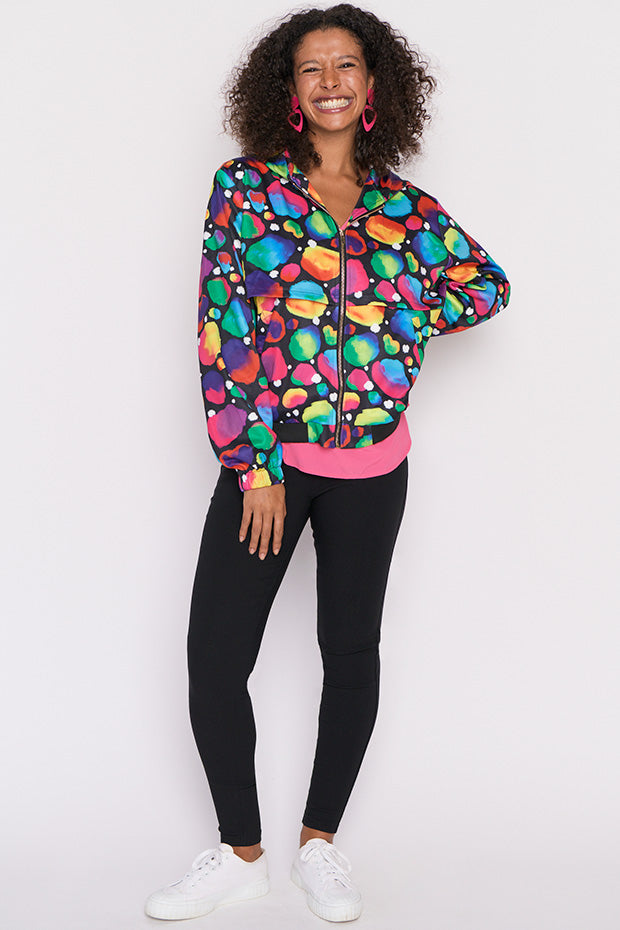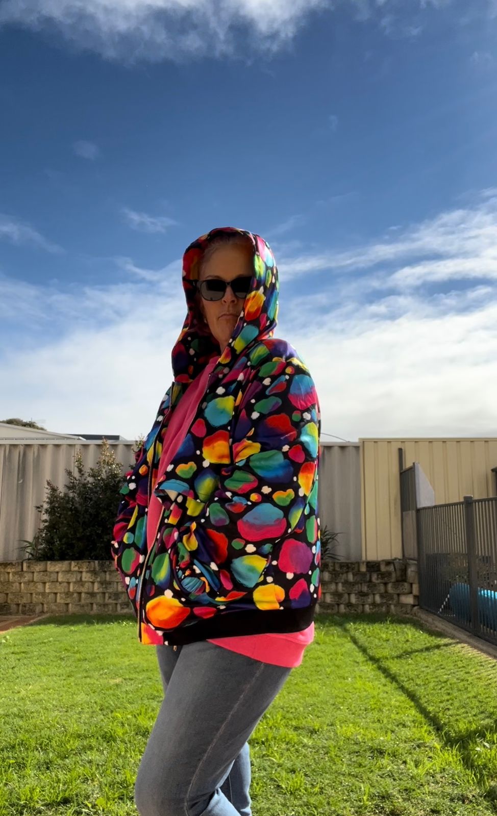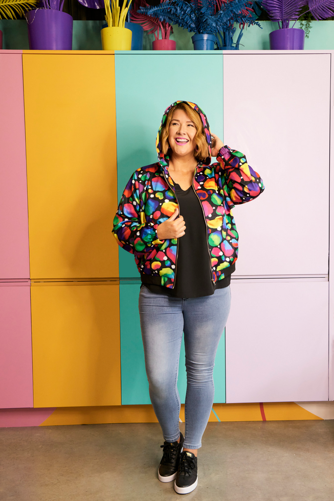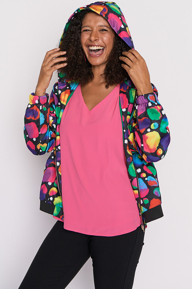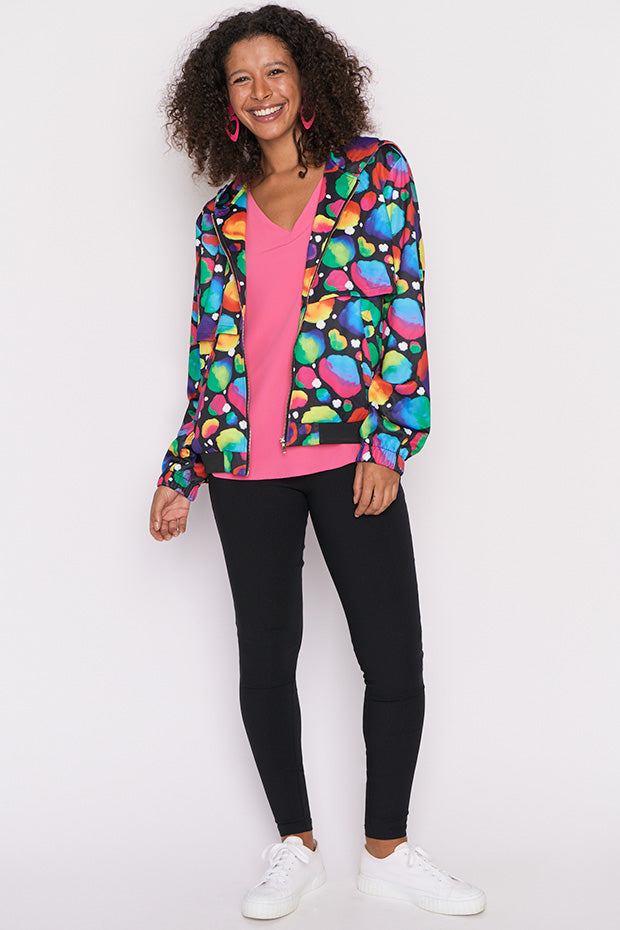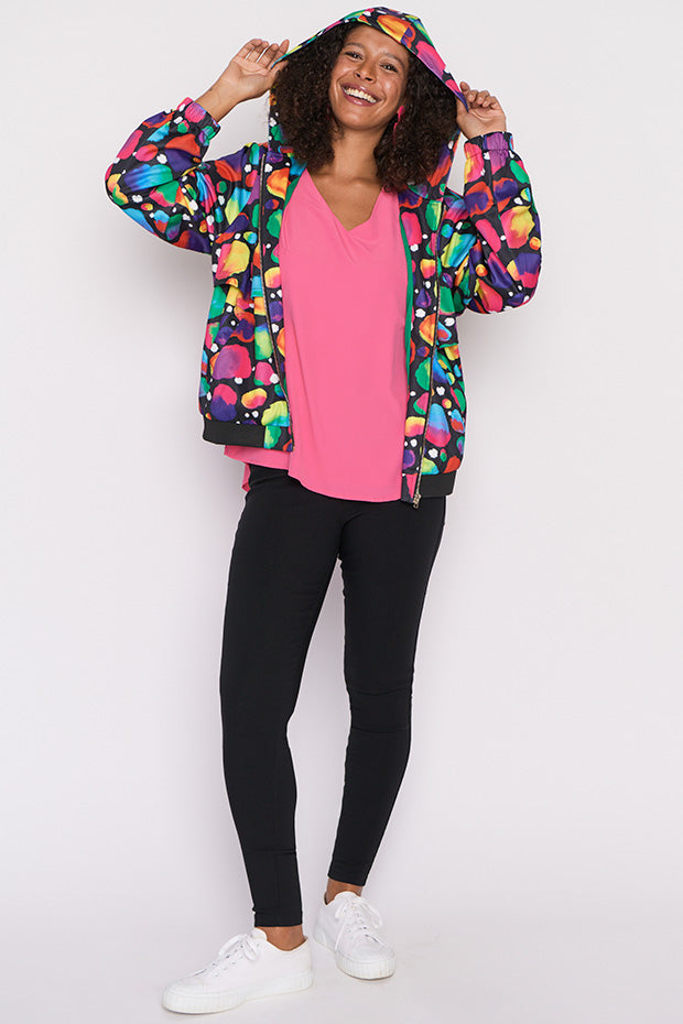 Featuring an elastic hem with a sporty retro stripe, a front zipper and relaxed hood. Including flattering anorak panels on the front, long sleeves with elastic cuffs that can be pushed up and insanely useful front pockets for your phone and lip gloss.