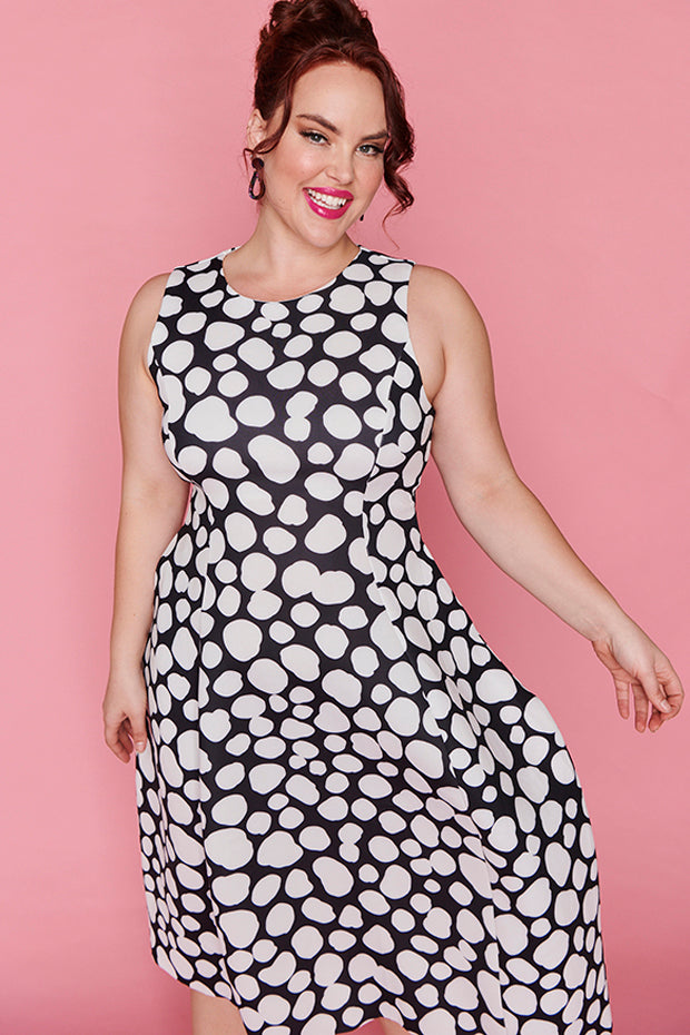 FeaturingĀ anĀ all over stretchy soft fabricĀ with aĀ high round neckĀ &Ā sleevelessĀ fitted top.Ā TheĀ pleated skirt then flares outĀ from the waist, flowing down toĀ unfinished raw hemline.Ā The fit & flare silhouette, gives it thatĀ vintage touch while also minimising the lower half.Ā