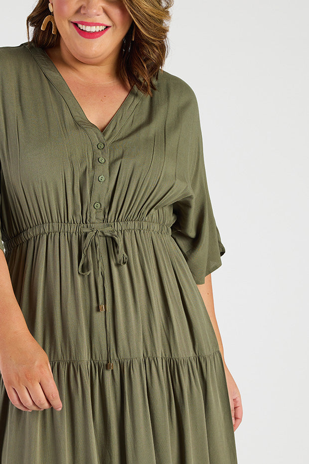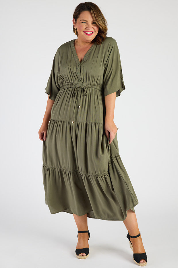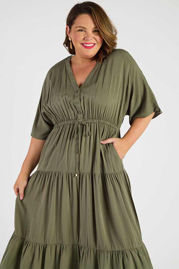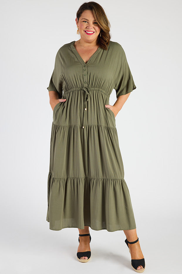 Show off your modern bohemian side in this divine Maddie Khaki Dress. Just add strappy sandals for an effortless new season style... And she has pockets! 🙌🏼