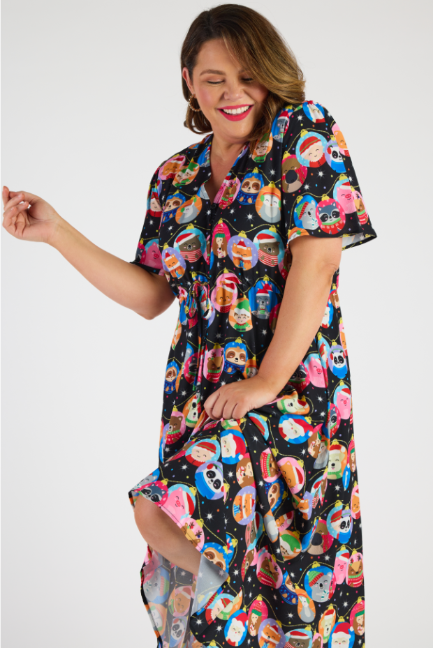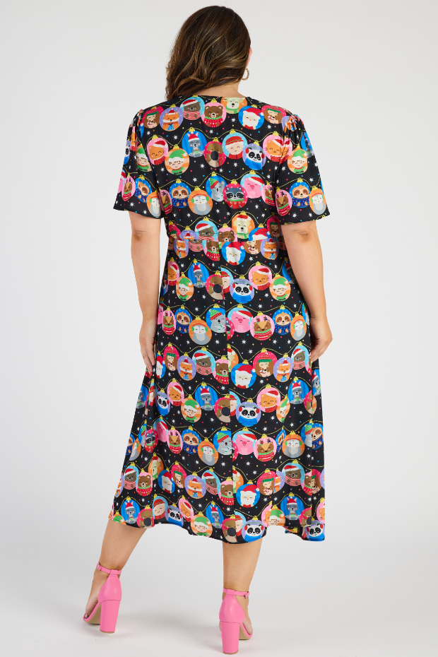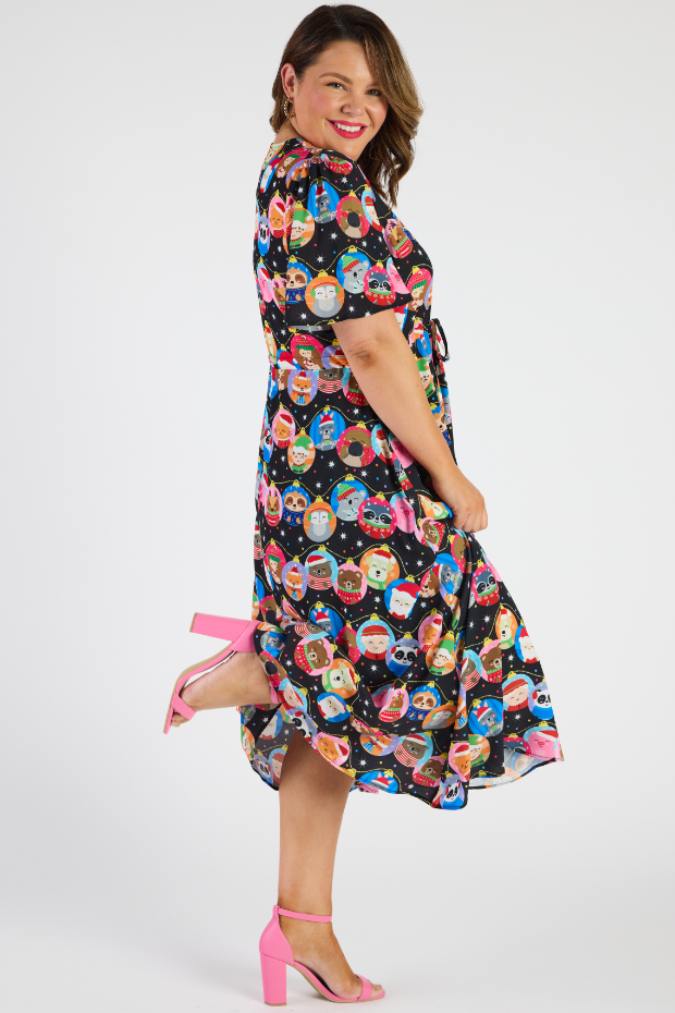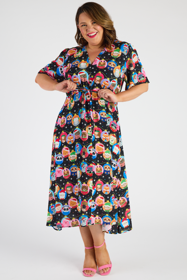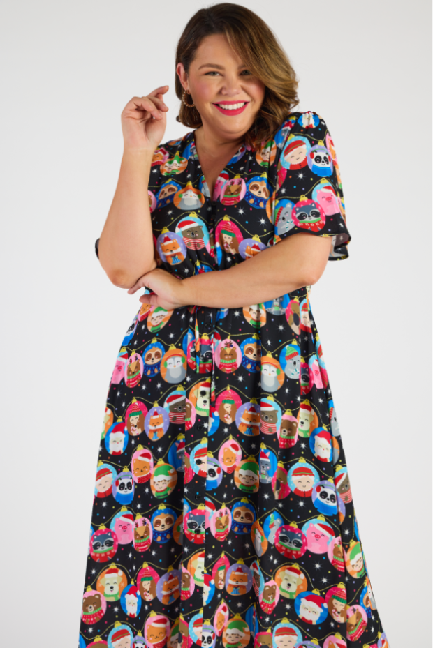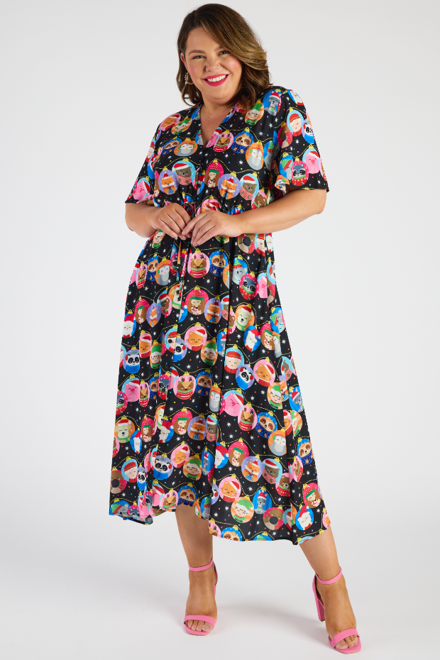 Gorgeous colourful and fun Christmas dress. Marley style is comfortable and the under bust drawstring is great for making the dress more loose or form fitting.