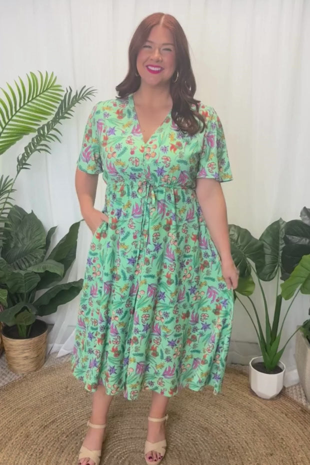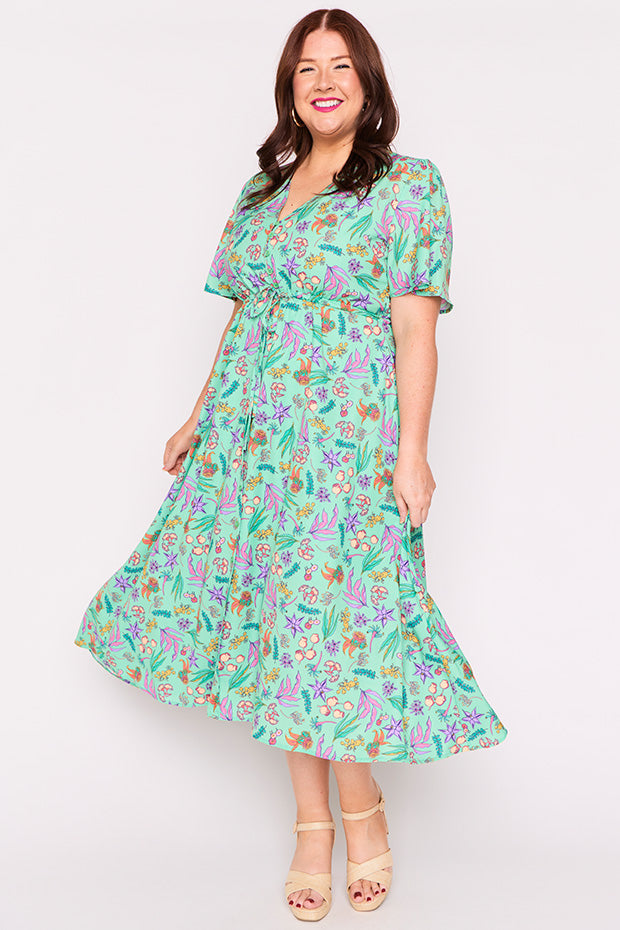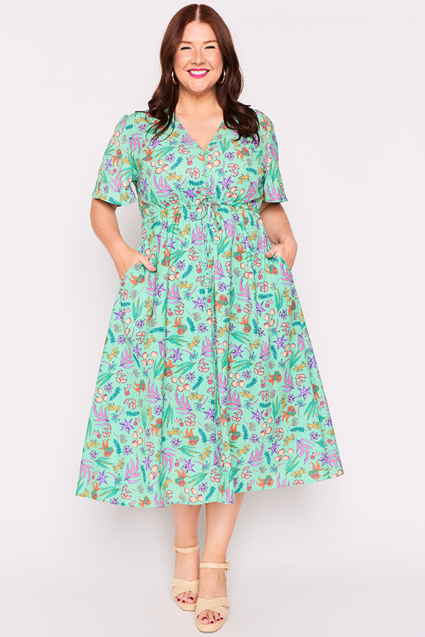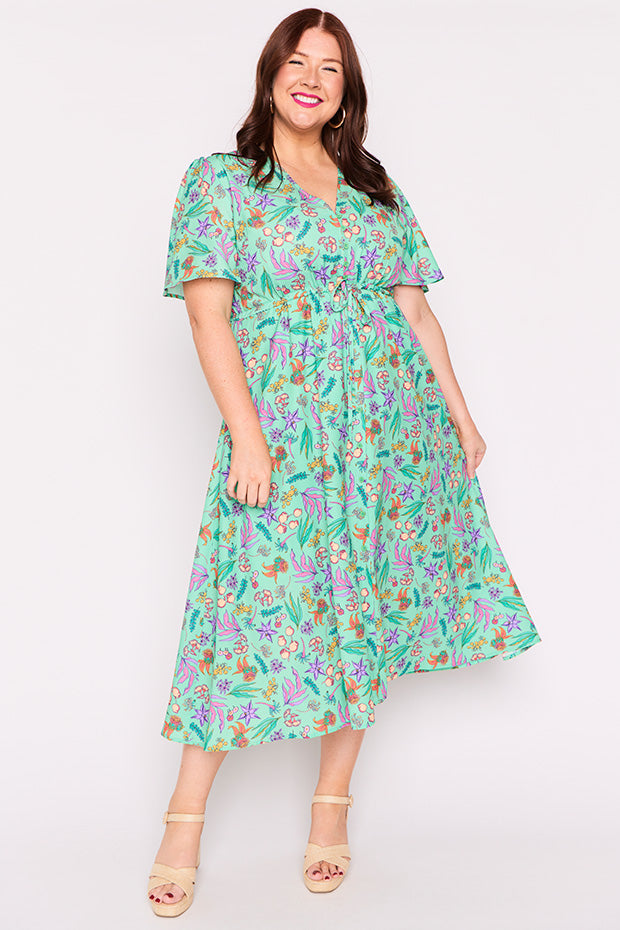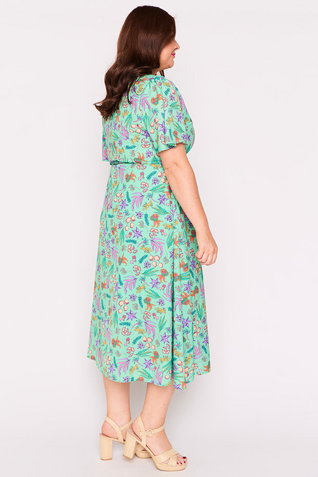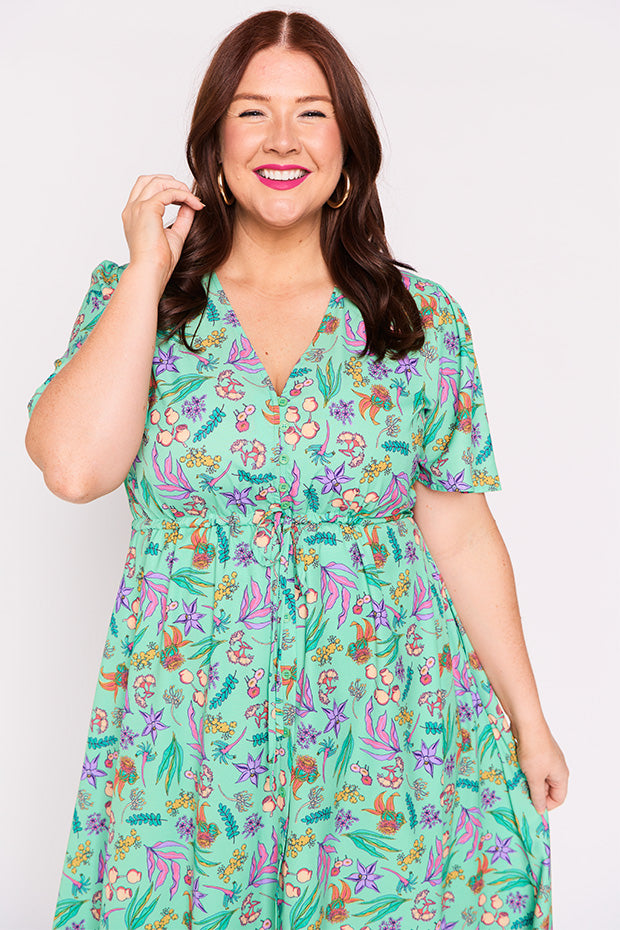 Inspired by the beauty of the native landscape, this Marley Dress features our Bush Botanical print exclusively designed by the ever talented Romona Sandon. With pastel green tones and intricate natural details. Effortlessly elegant and grounded in nature, it’s perfect for relaxed days or outdoor gatherings.