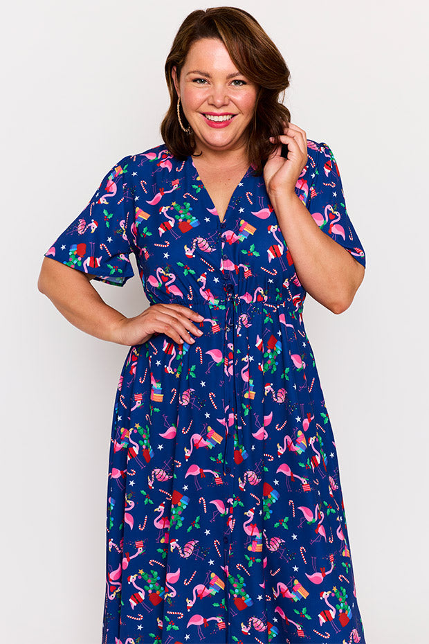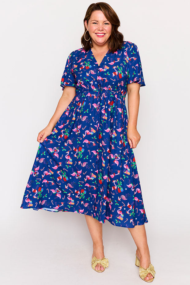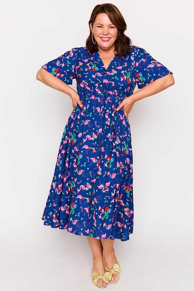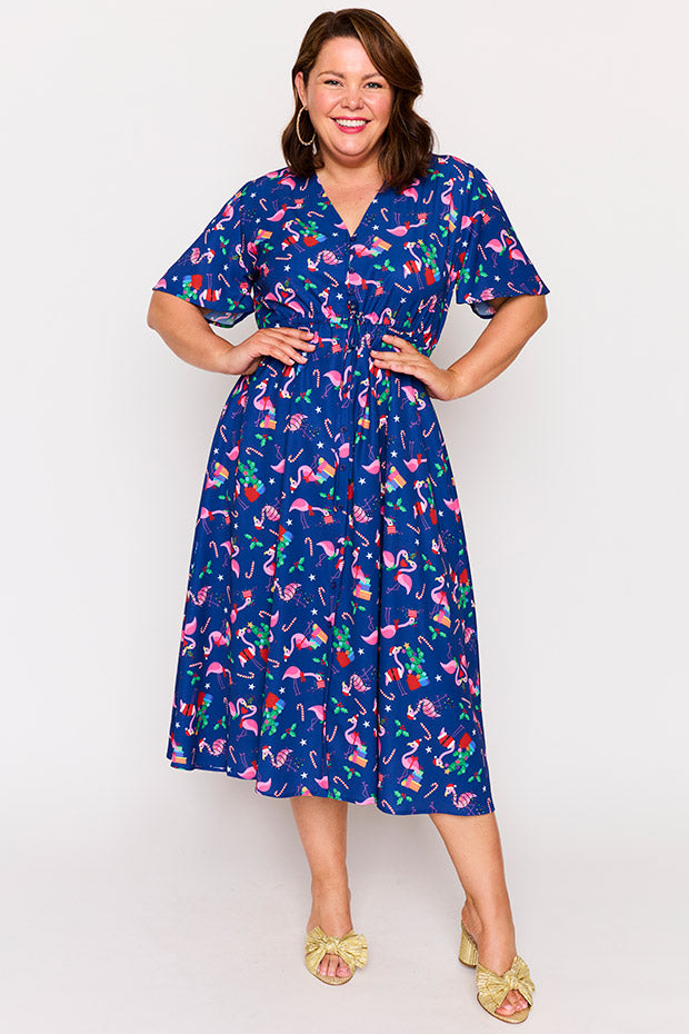 Stunning on, great sizing and very festive. Feel great when trying on the dress. Looking forward to wearing at the end of year party.