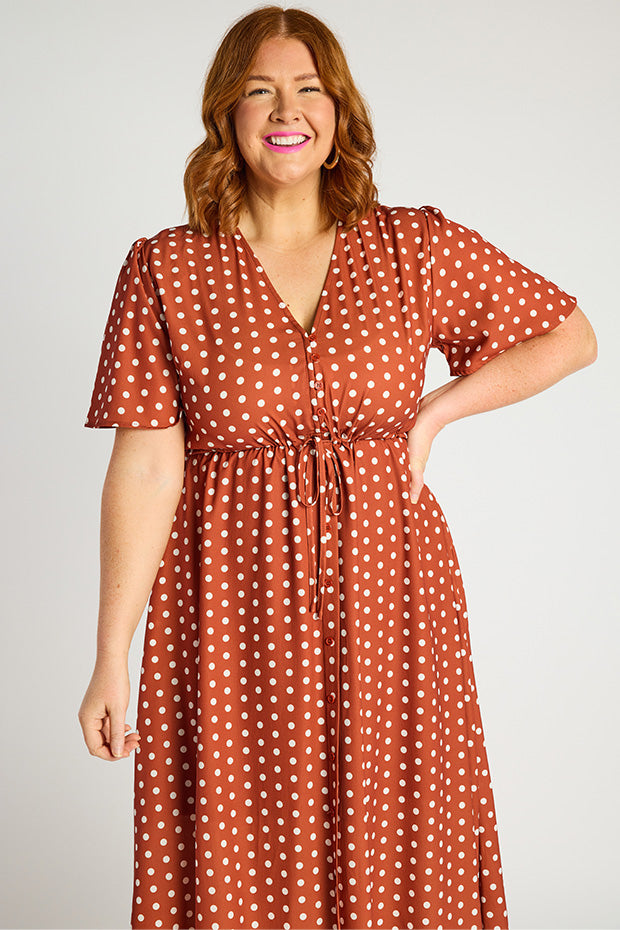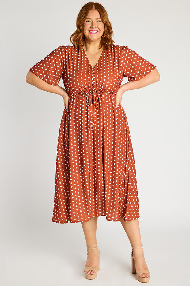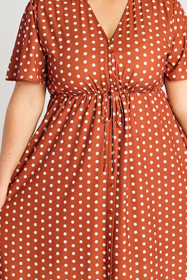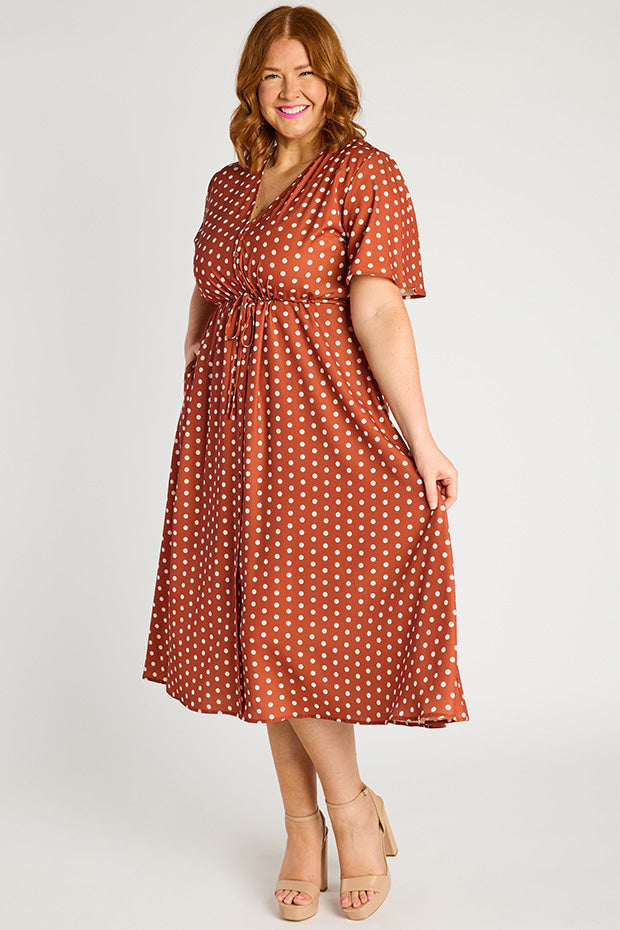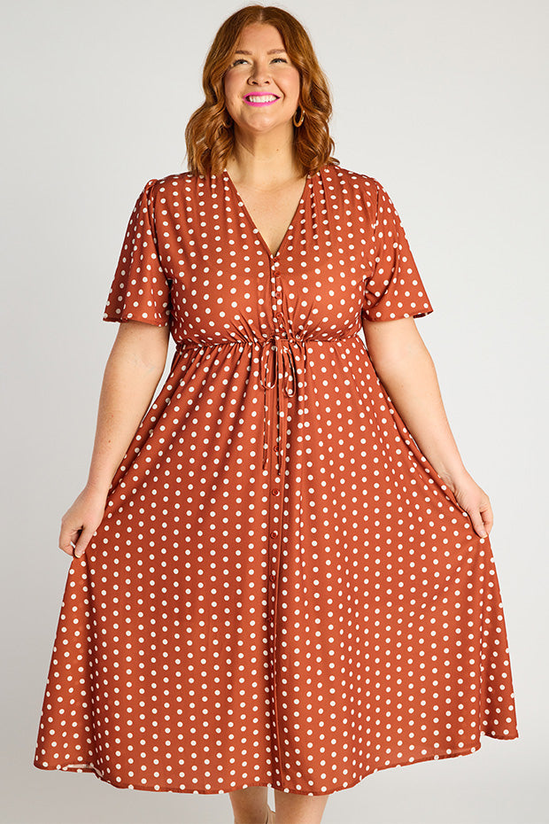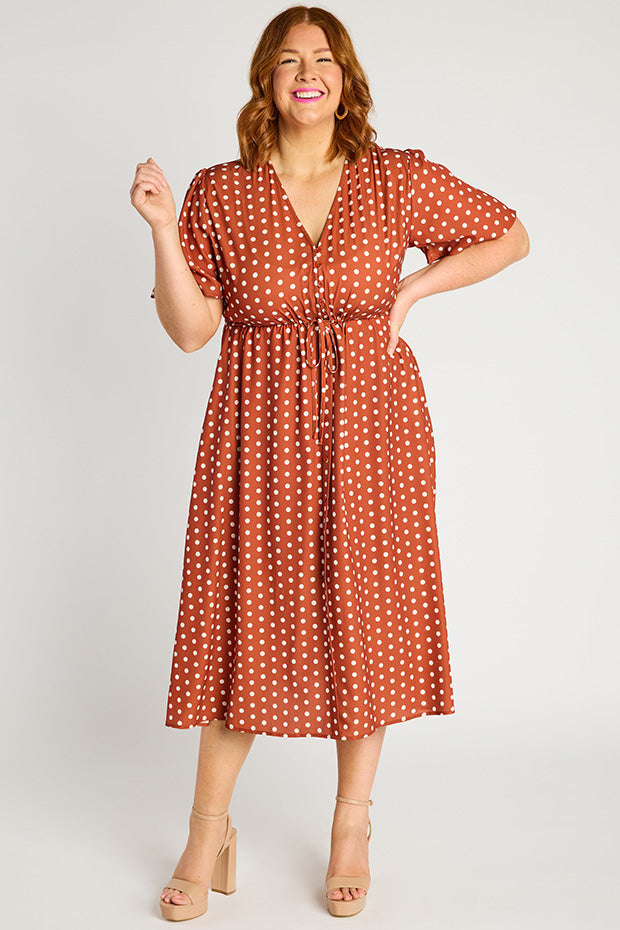 Absolutely love this dress and get so many compliments when I wear it. Just love polka dots! A comfy, generous fit.