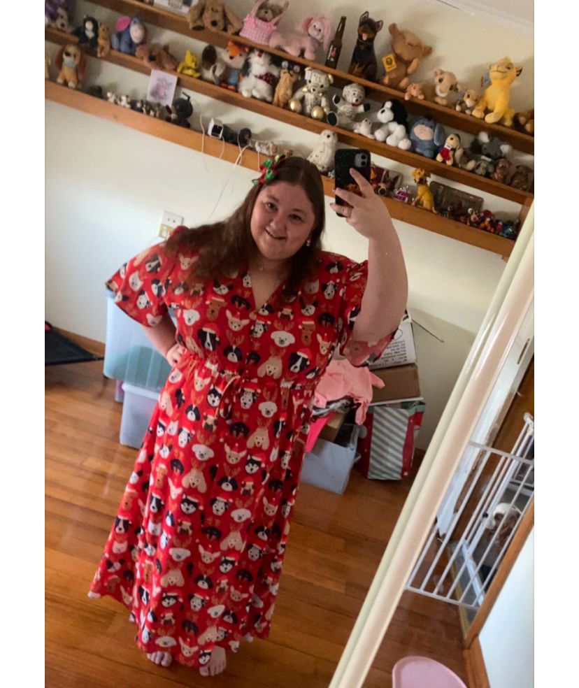 I love this dress and so does everyone else too it seems, I get constant compliments whilst wearing it, who doesn’t like dogs! Beautiful material and plenty of room in the sleeves to keep your arms free, nothing worse than having large arms and putting up with sleeves that ride up. I love this dress❤️