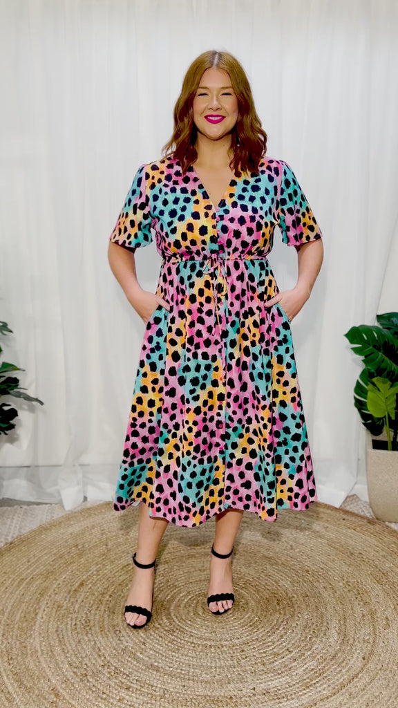 Bringing back a fan favourite print, in a classic fit! The Marley Trio Cheetah Dress 🐆🌈
