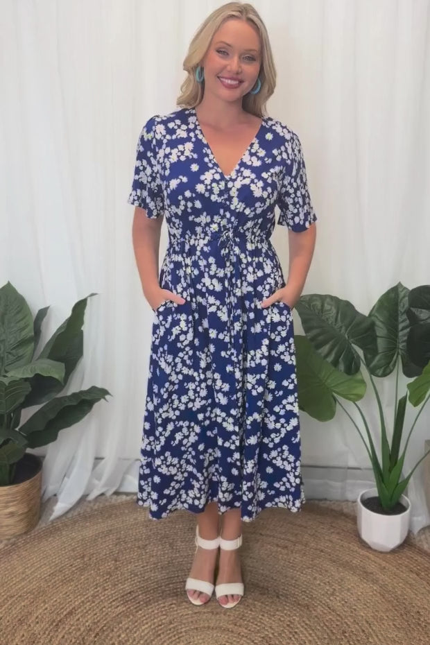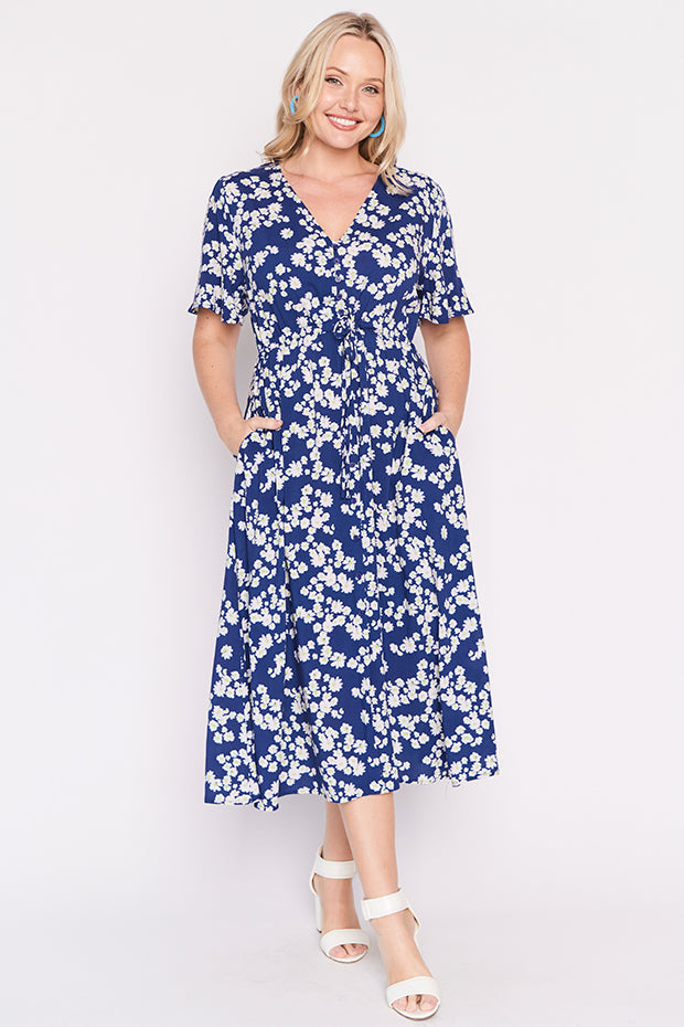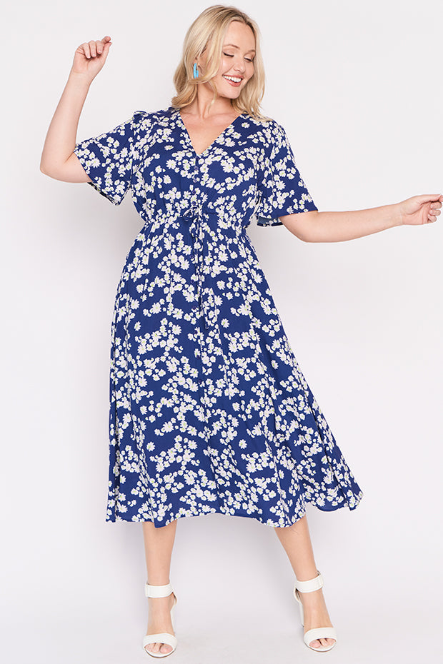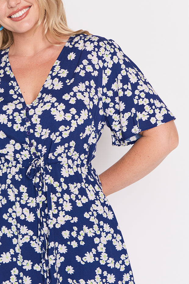 Brighten up your day with this Michelle Dress in our cheerful Blue Petal Whimsy Print. Light, breezy, and effortless Summer Dress—perfect for picnics, brunch, or sunny strolls.