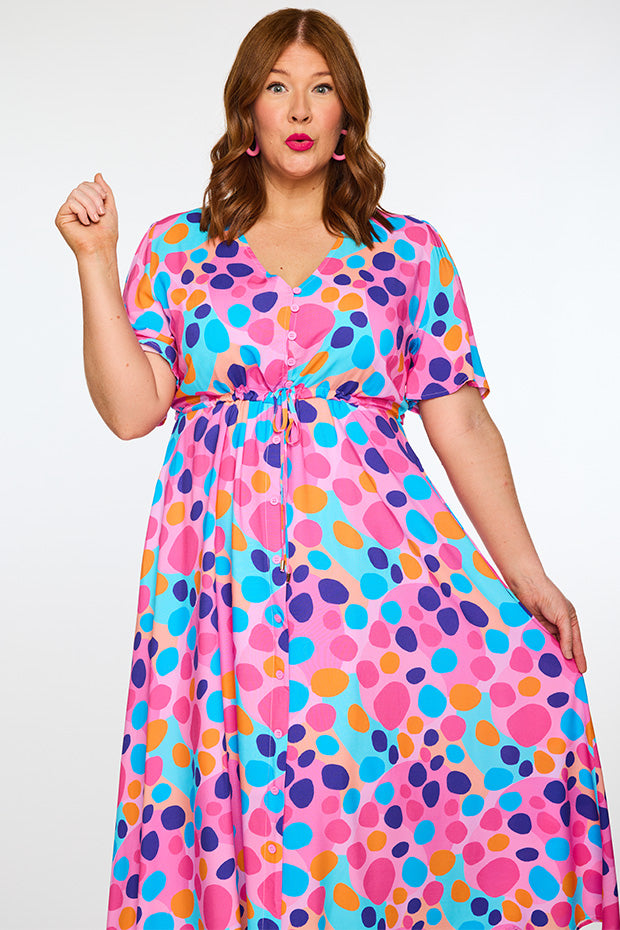 Beautiful fabric. Vibrant colours. Got a lot of compliments. Sizing is as described - generous. Another happy purchase from LPD.