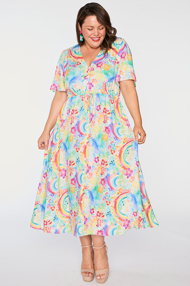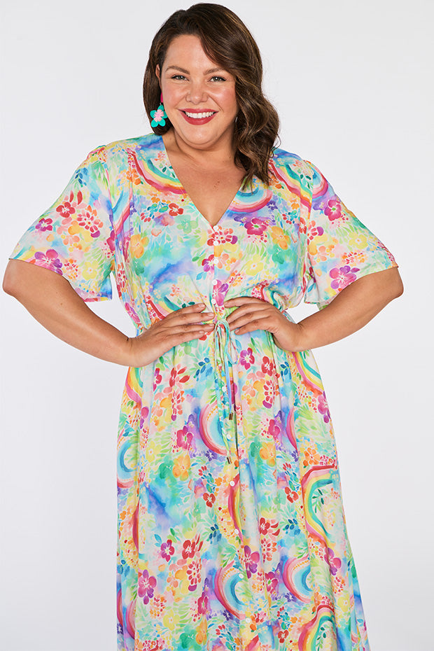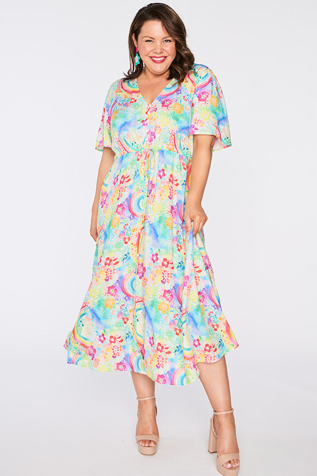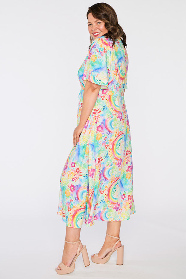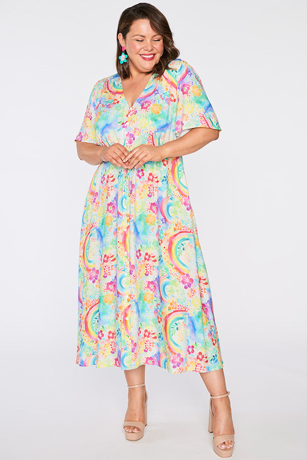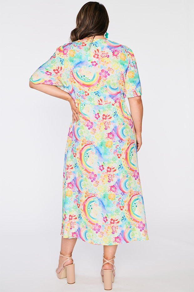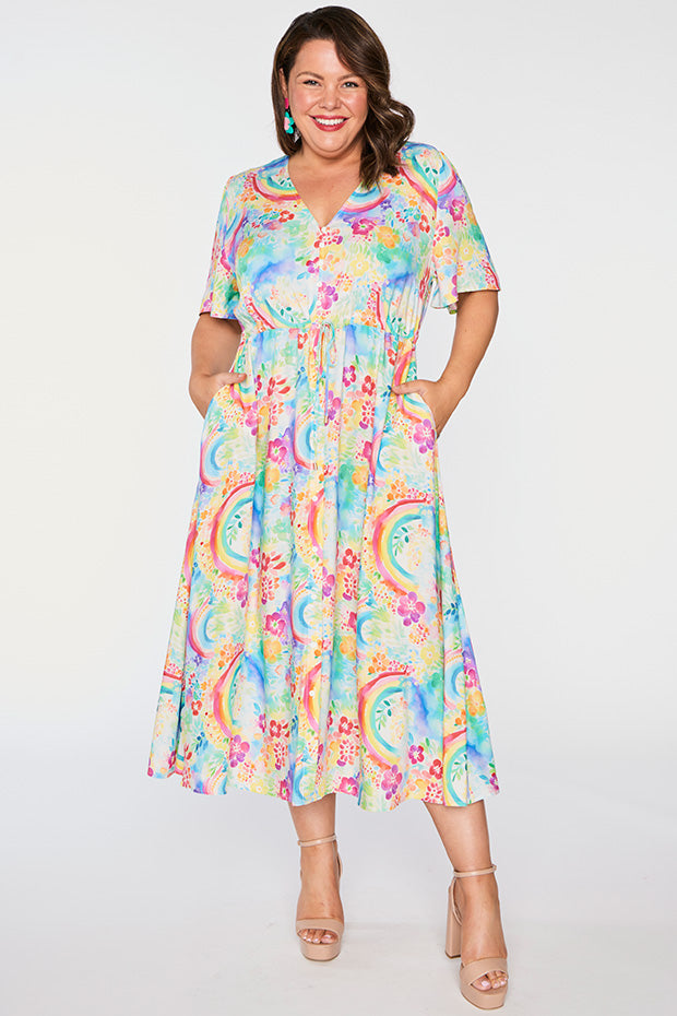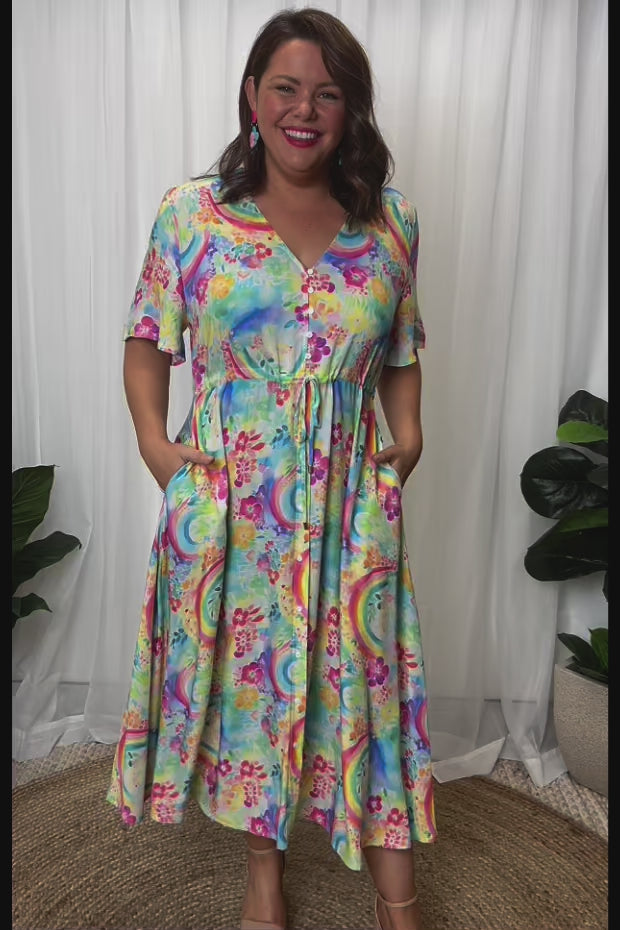 Feel fabulously flowery in our Michelle Rainbow Garden Dress 🌈🌿