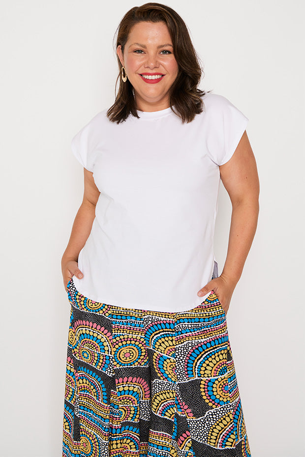 Love the fit and material of the milano tops! Especially how thick the white is and not too see through like a lot of white tops are. Normal sizing, standard fit.
