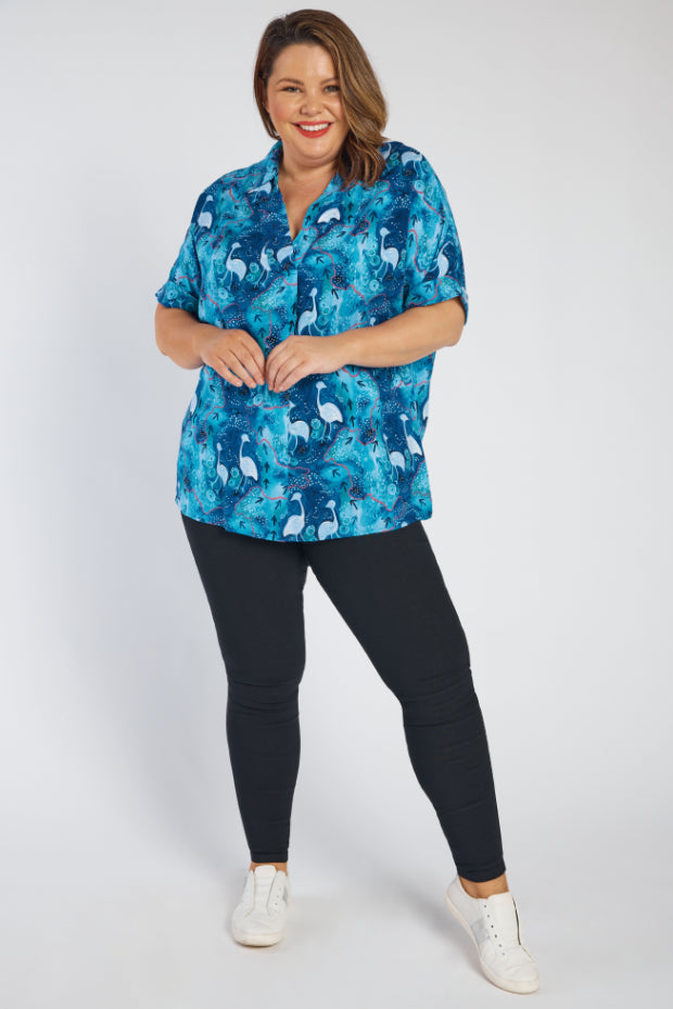 The Monnie Night Sky Top is designed in a light weight rayon fabric with a drop shoulder, draping silhouette, a slip on collared v-neckline and loose rolled sleeves. Giving this blouse a new meaning to modern chic 👌🏽
