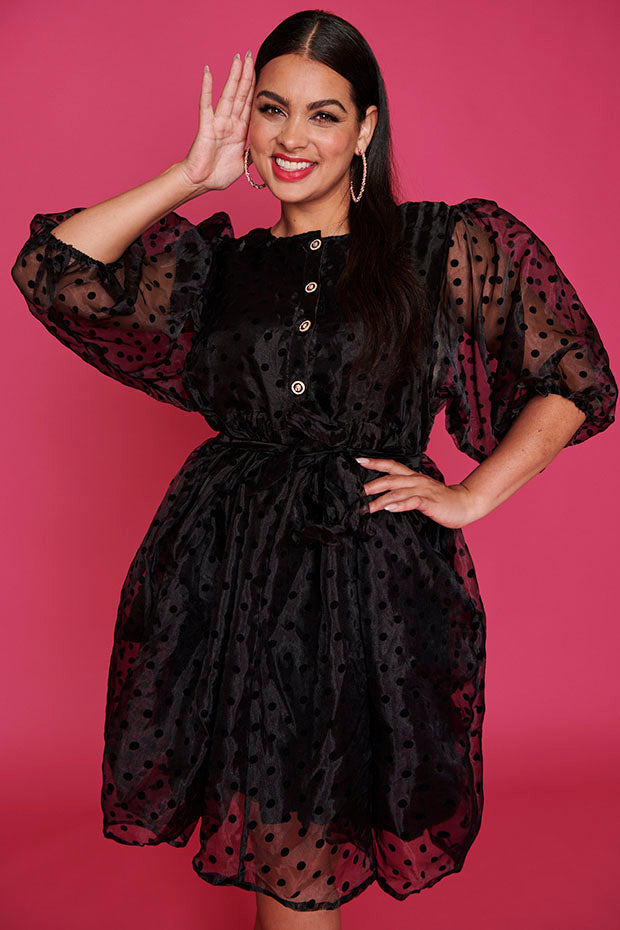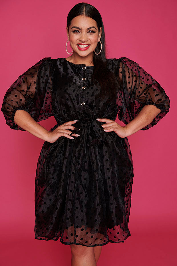 I adore this dress! The shape, the puffed sleeves, the detailed buttons. Compliments come from everywhere when you wear it! It is the cutest wedding guest dress EVER!