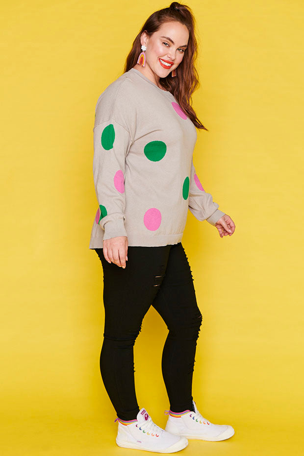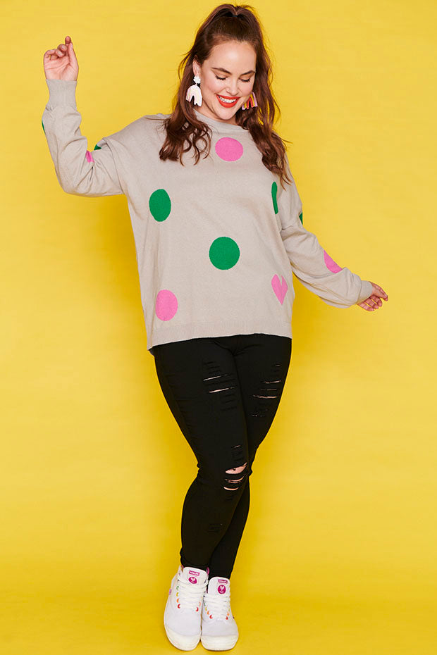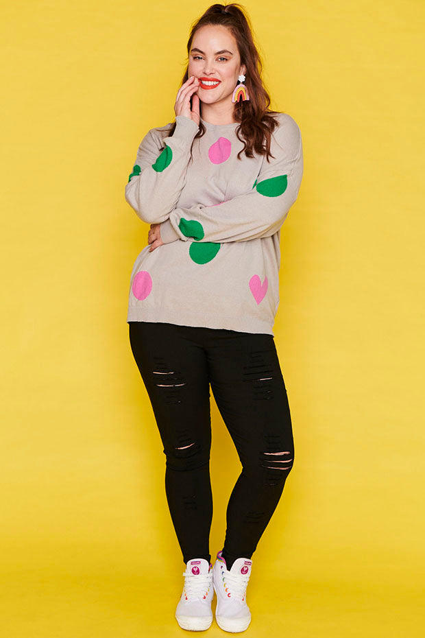 I really liked the print so I ordered this knit in the grey - not my first choice of colour but the black was sold out.. then it arrived and I LOVE IT!! So now I’ve ordered the black too😉 Great fit - I’m a 16-18 usually so I got the XL and it’s perfect, loose-ish but not baggy and good length too. I haven’t had any luck so far with LPD dresses, but knits are 👌🏻👌🏻 for me.