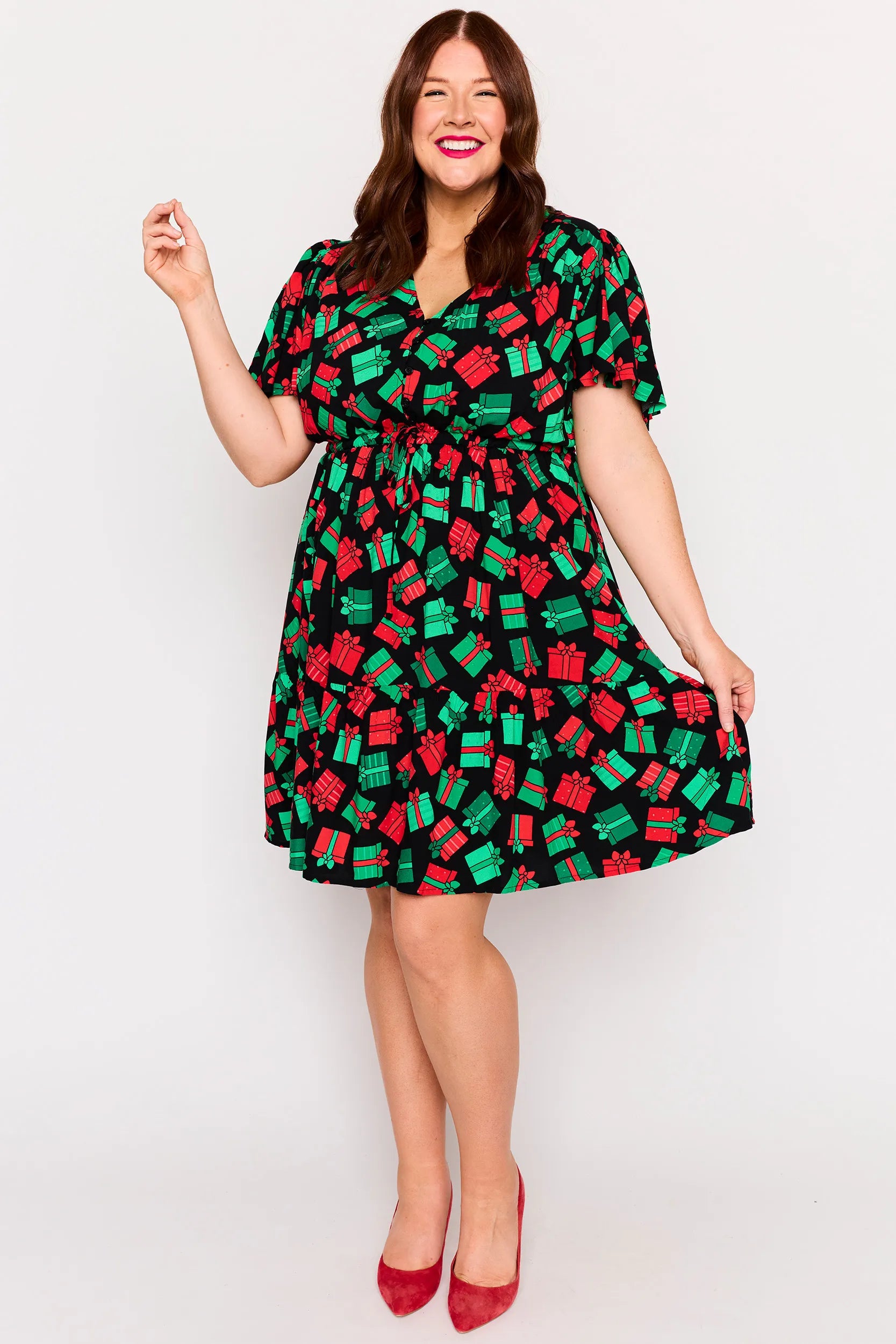 Unwrap the magic of the season in our exclusive Christmas Presents print designed by our very own Kim fromĀ ZonktĀ® . Inspired by classic gift wrapping with bold ribbons and festive colors, this dress is a joyful nod to tradition - and the best gift you'll receive (or gift to yourself!) this year.Ā