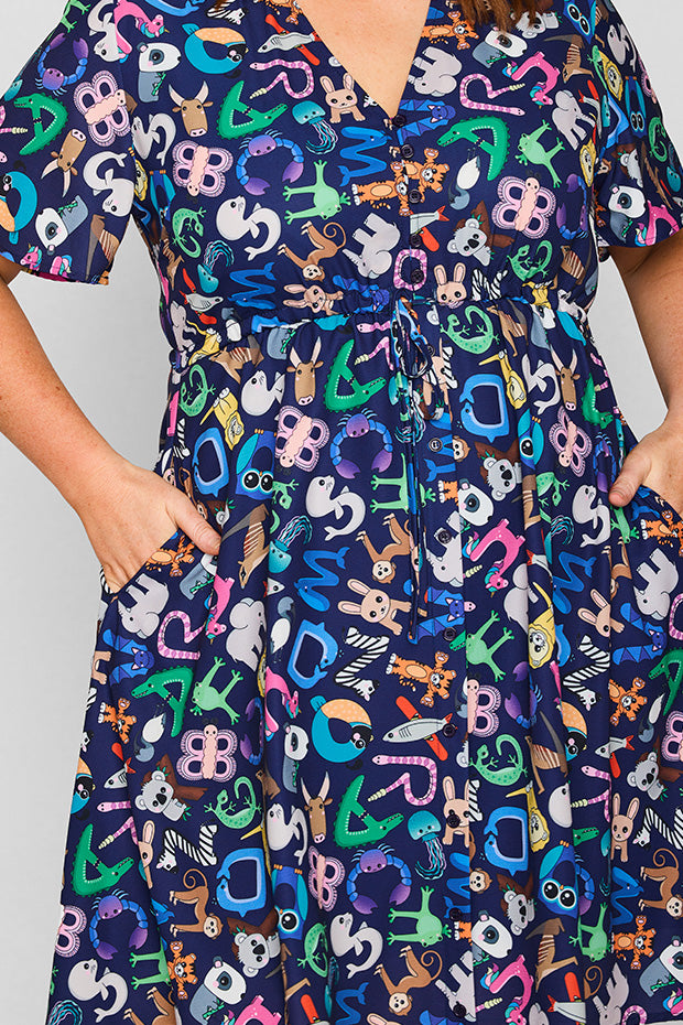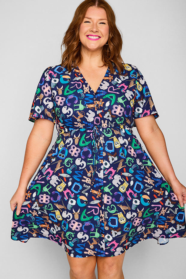 Feel fabulous in our Siena Alpha Animals Dress 🦈🐰🐆