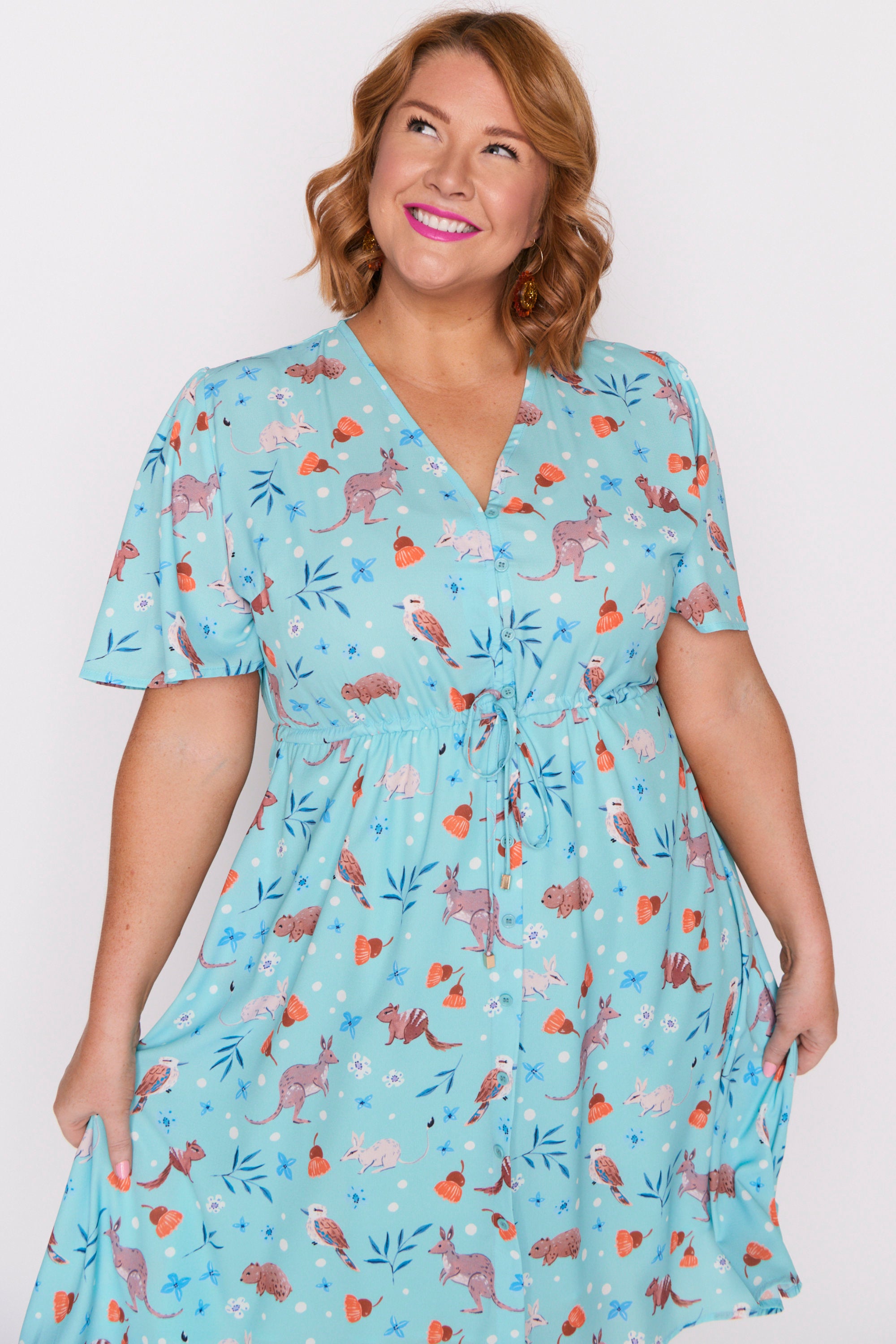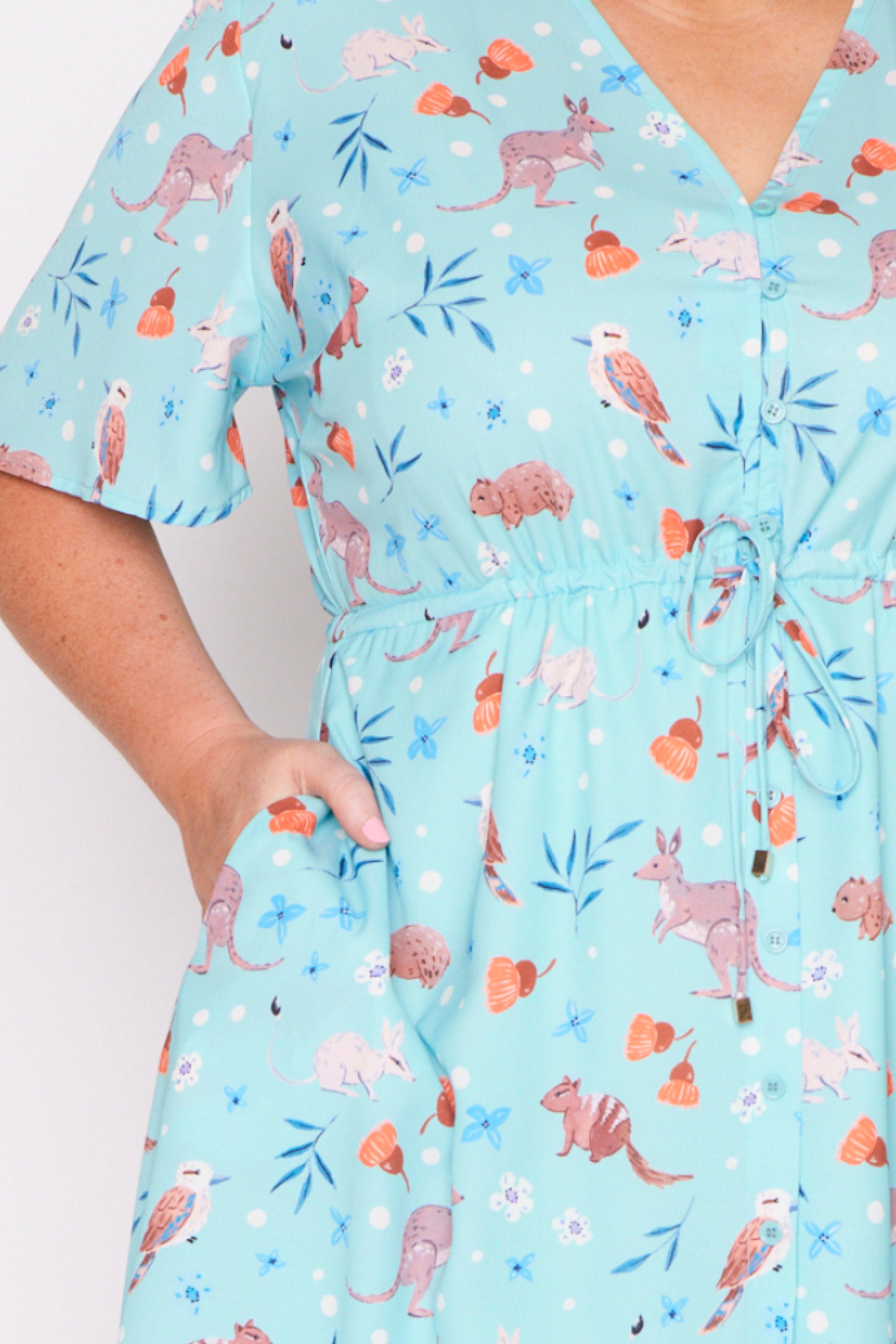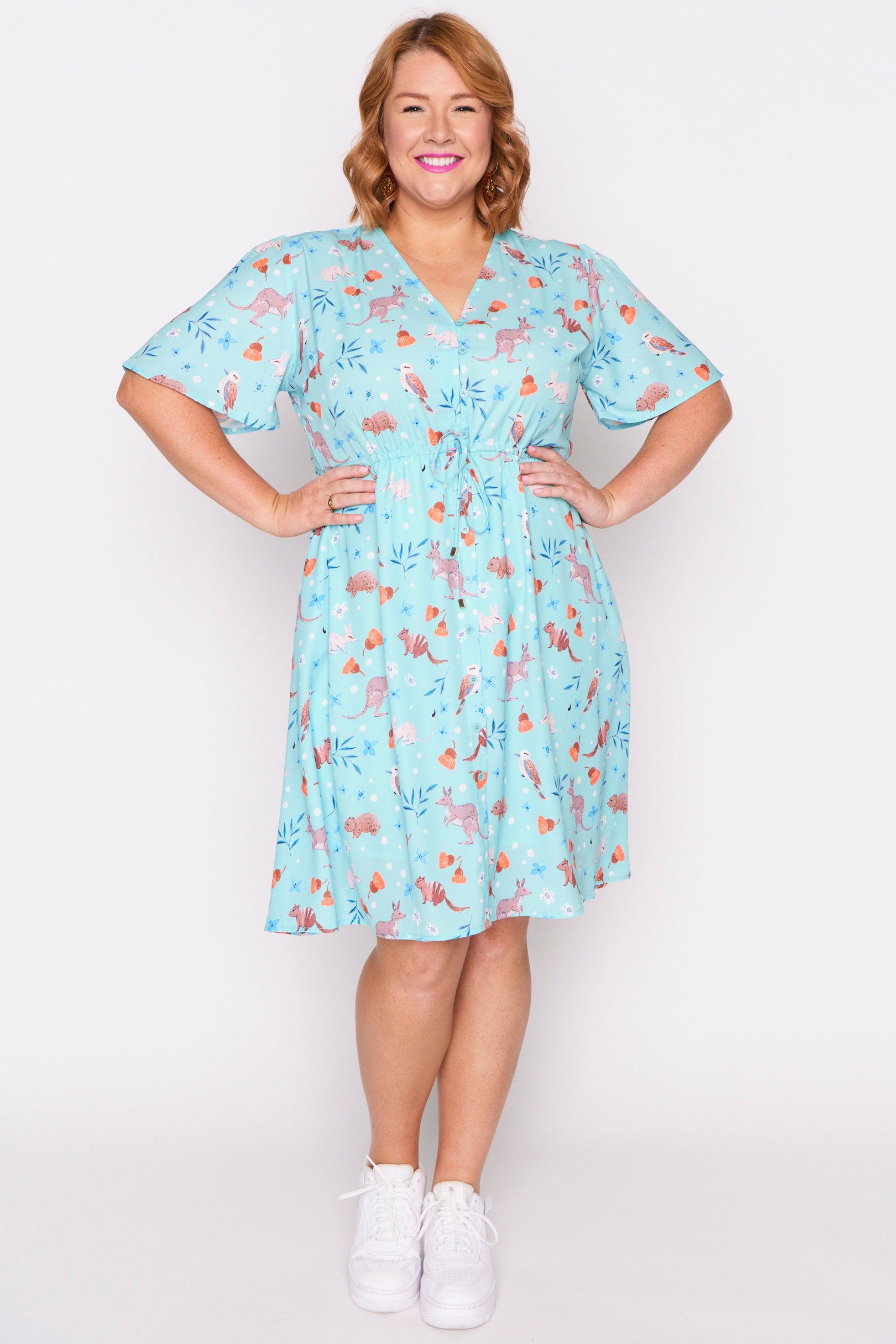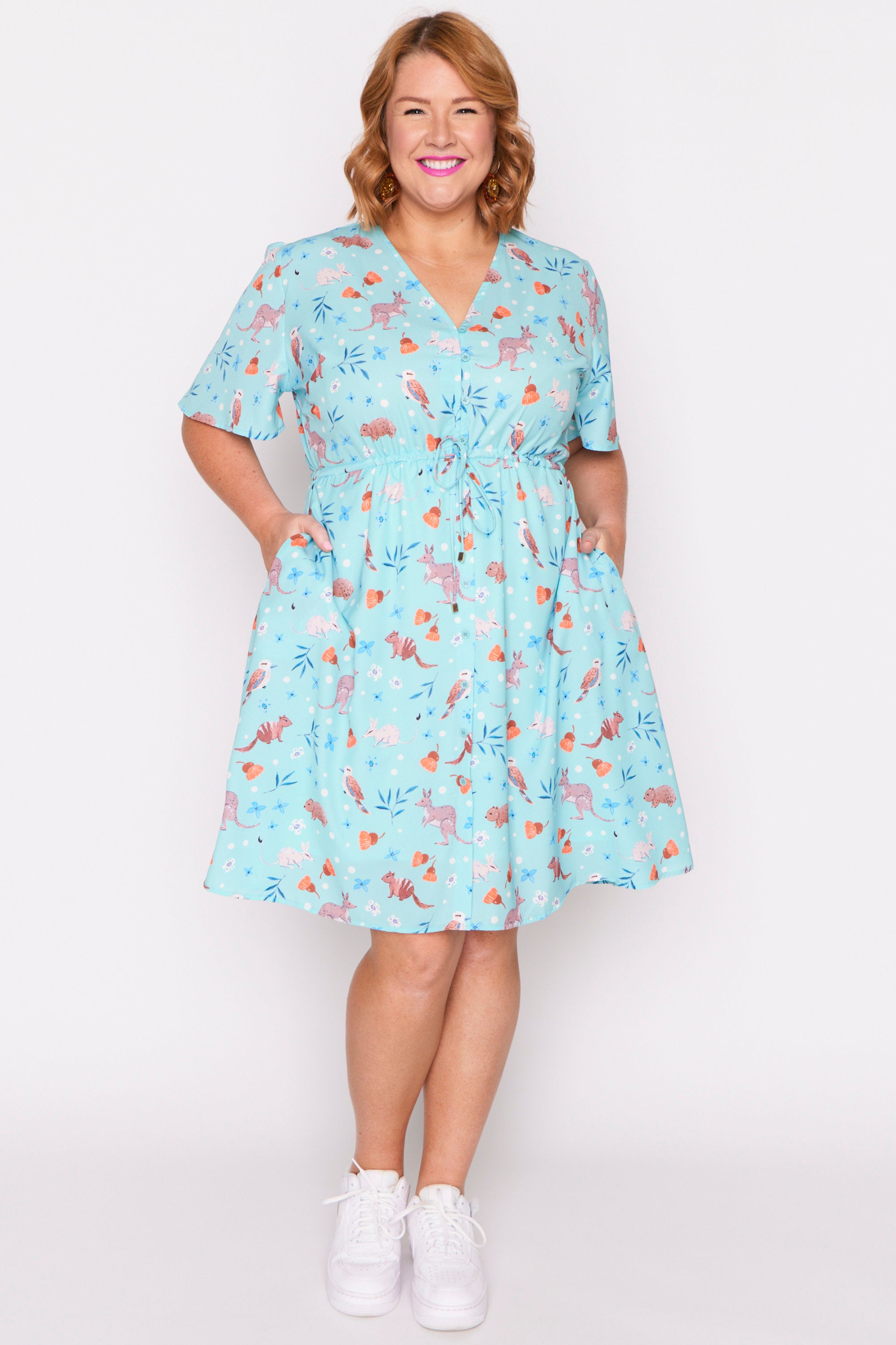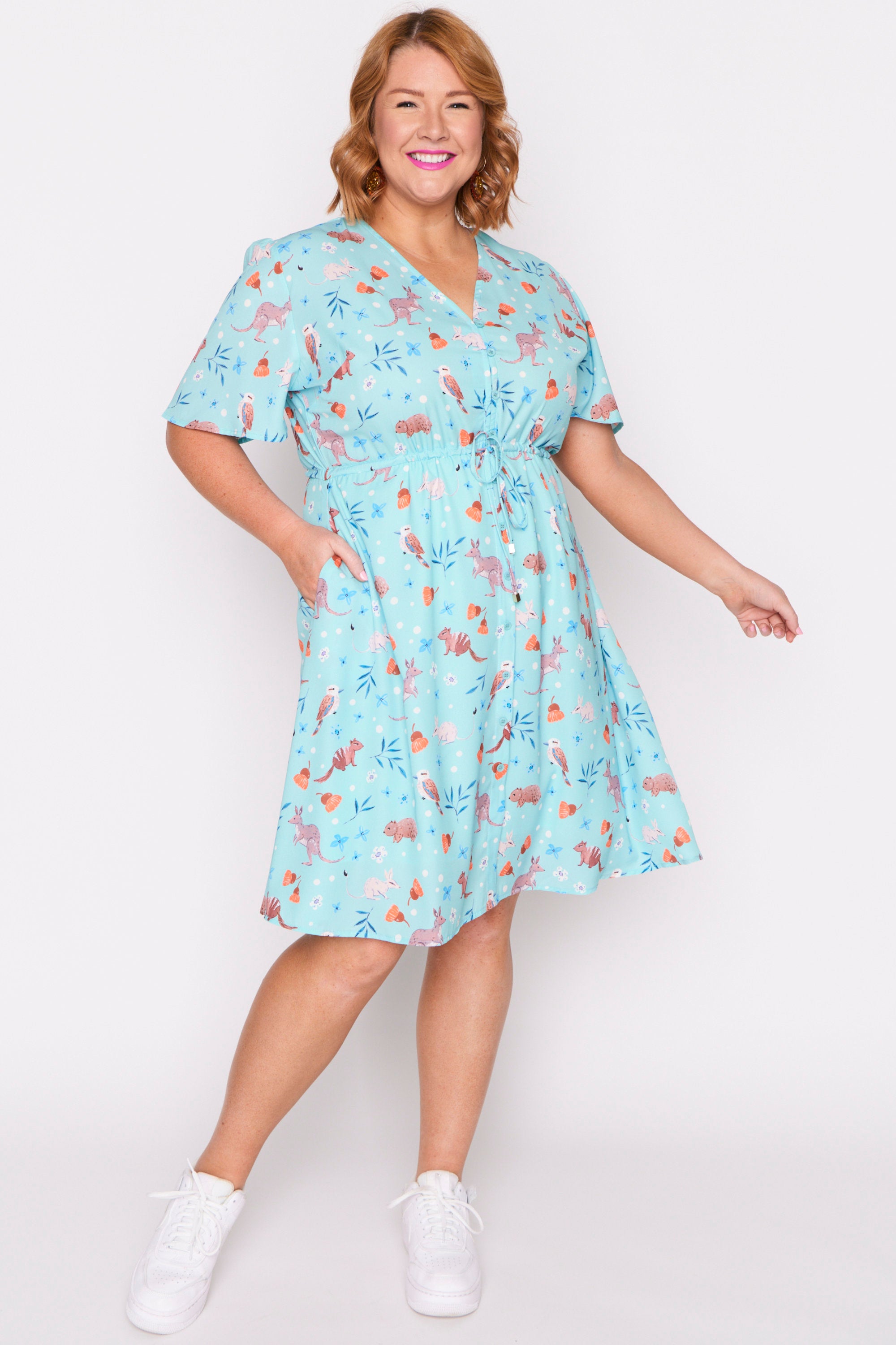Print and the baby blue colour is gorgeous. Love siennas for the perfect Length. Not too long not too short