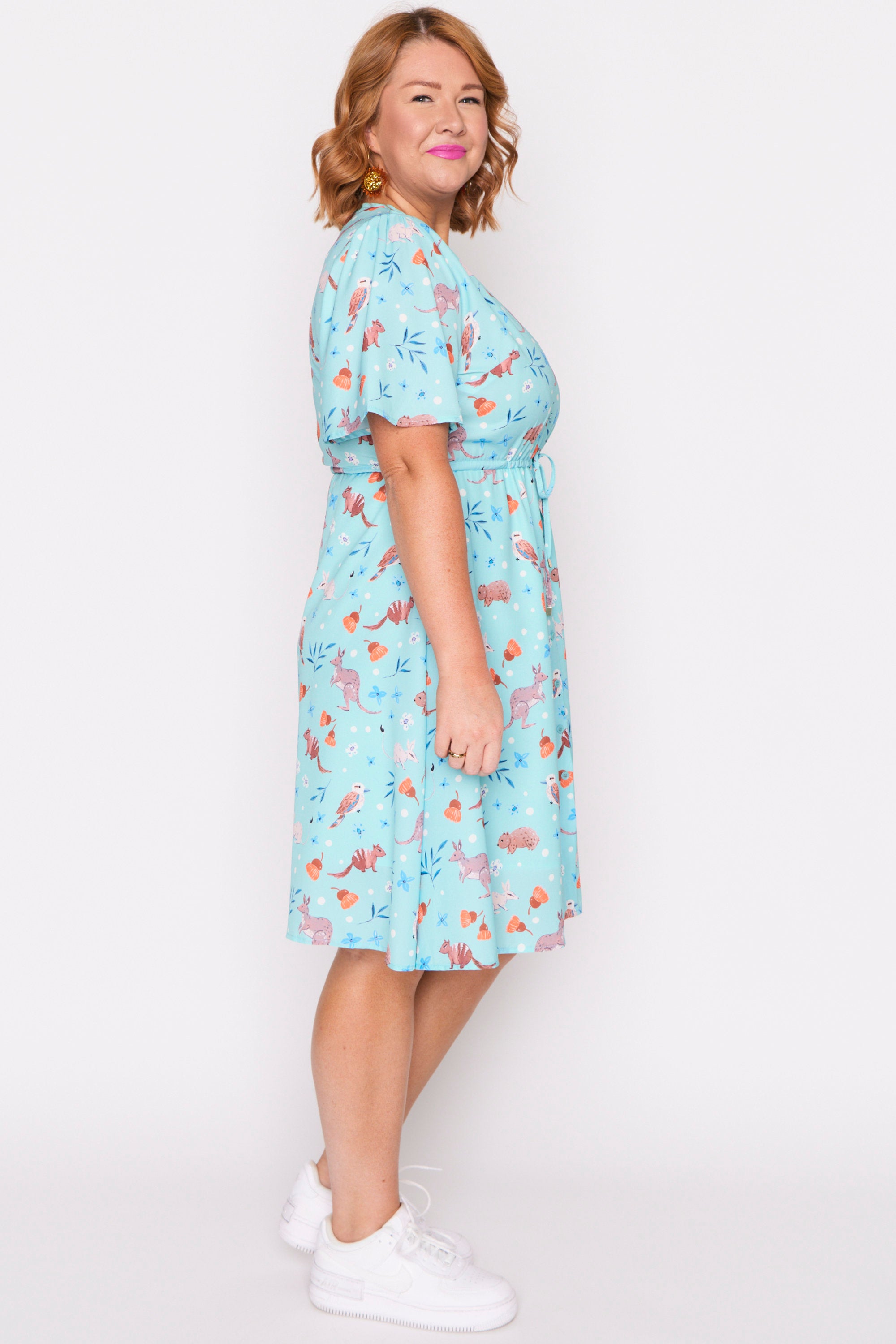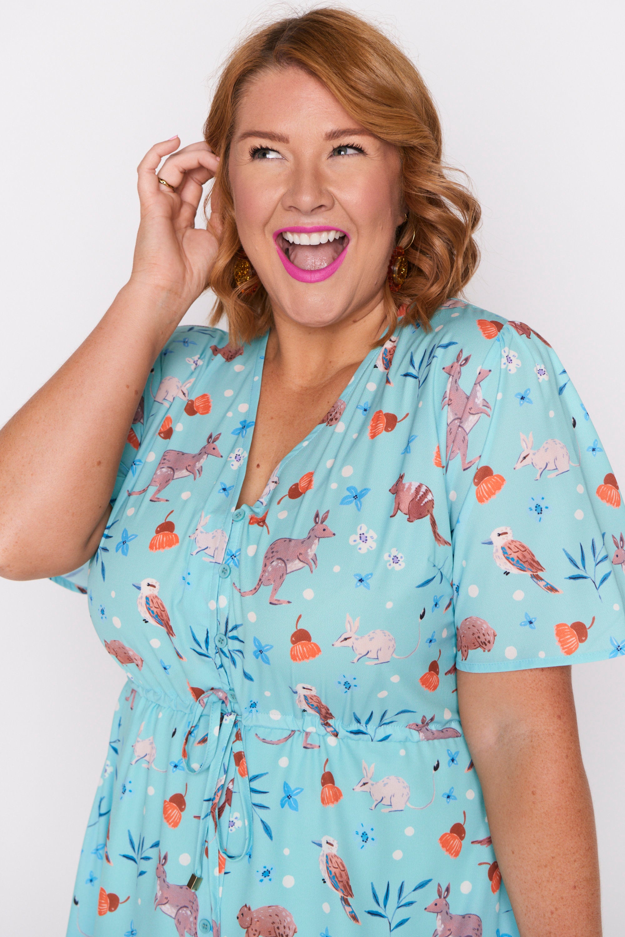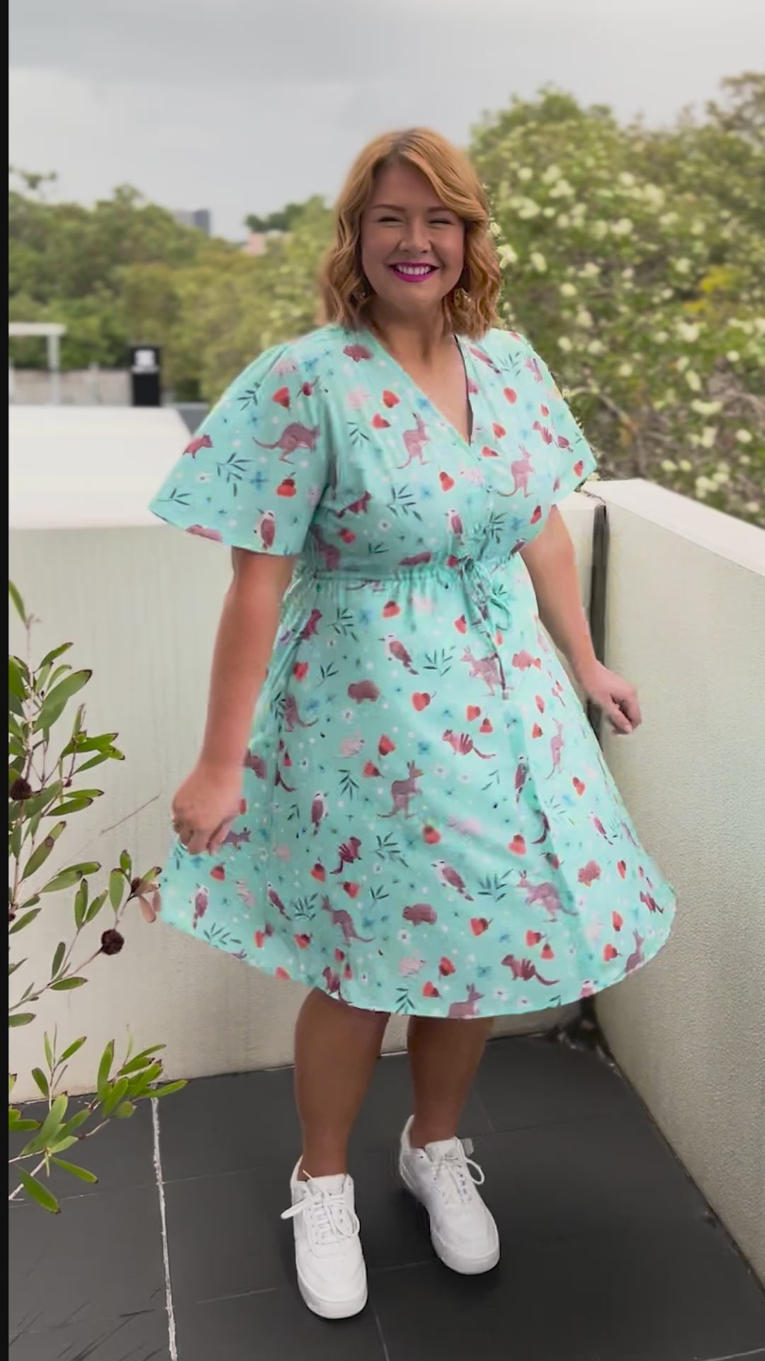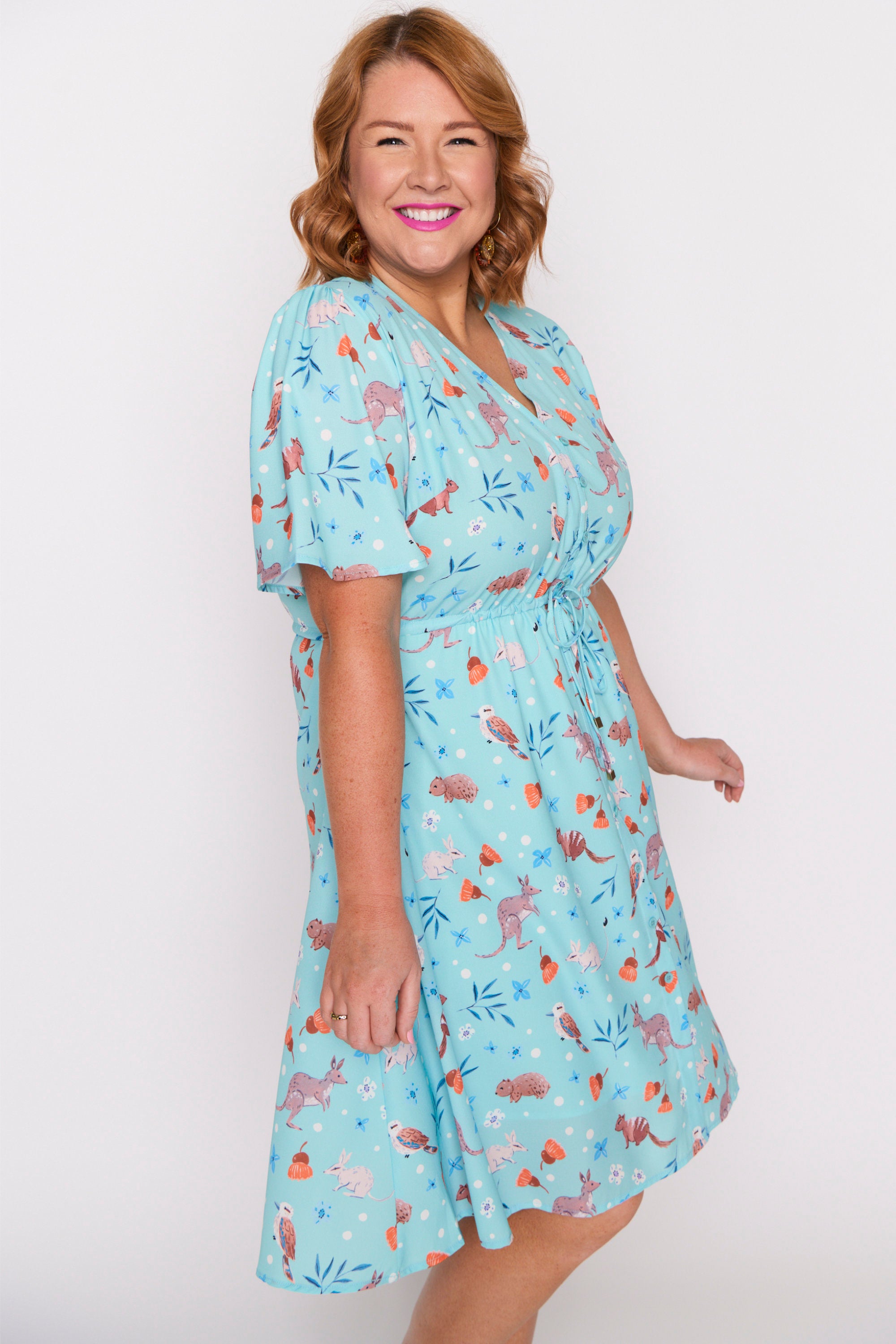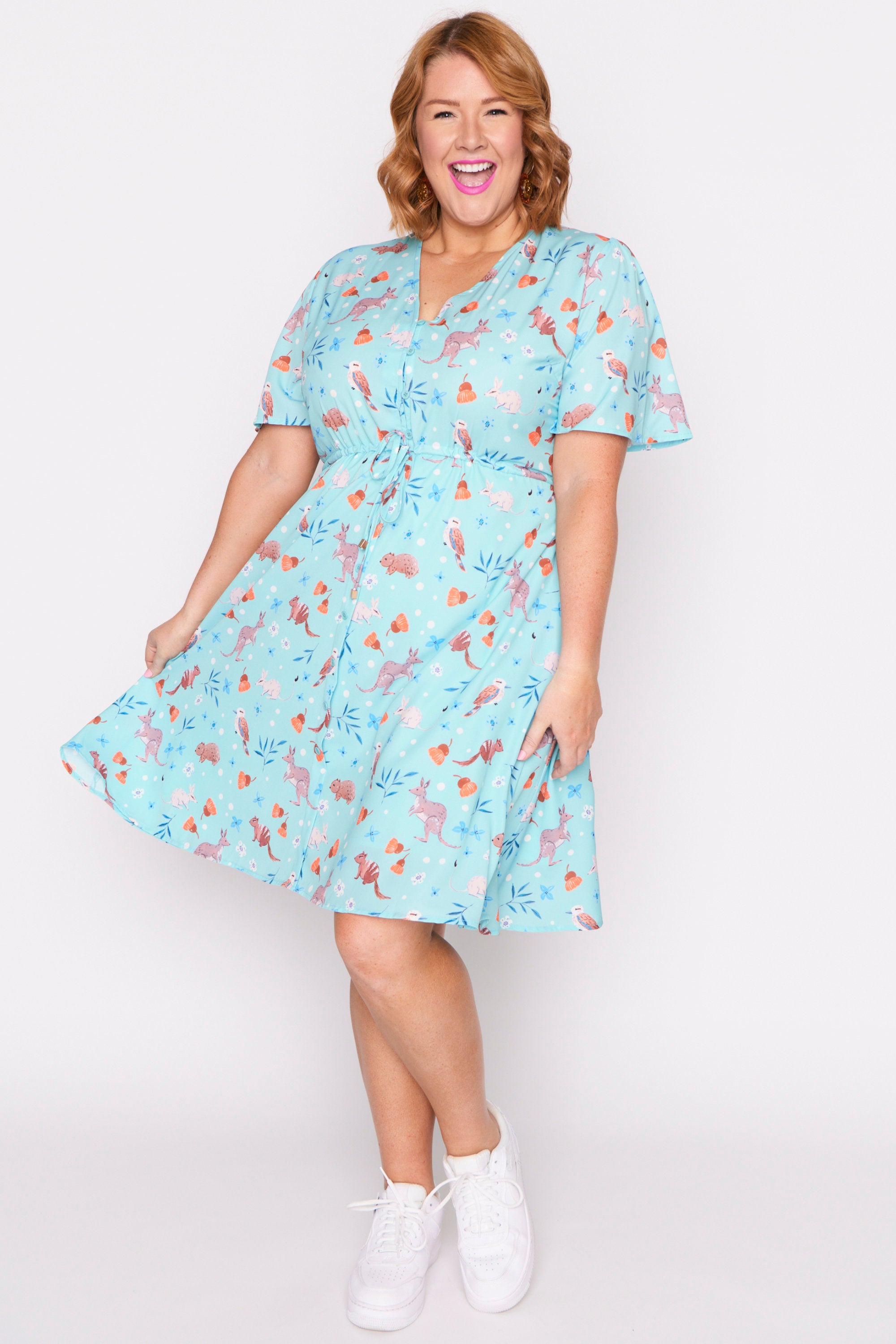 Print and the baby blue colour is gorgeous. Love siennas for the perfect Length. Not too long not too short