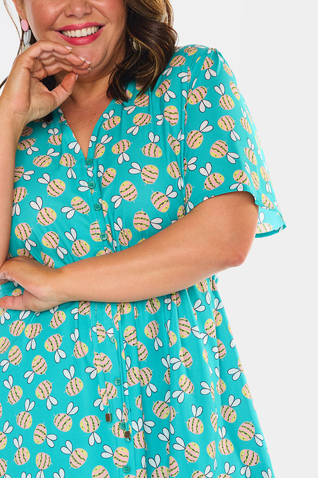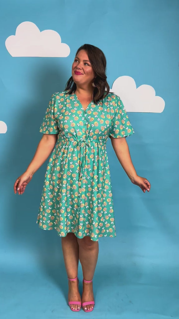 "I am so proud of this design, not only for how freaking adorable the bees are, but the thought process behind them and the out of the box thinking that brought them to life. To see the design come to life as a repeat pattern on a dress for our wonderful teachers to adorn is seriously a dream come true and a real 'pinch me' moment. I hope the design is as loved as the incredible teachers who will wear it."