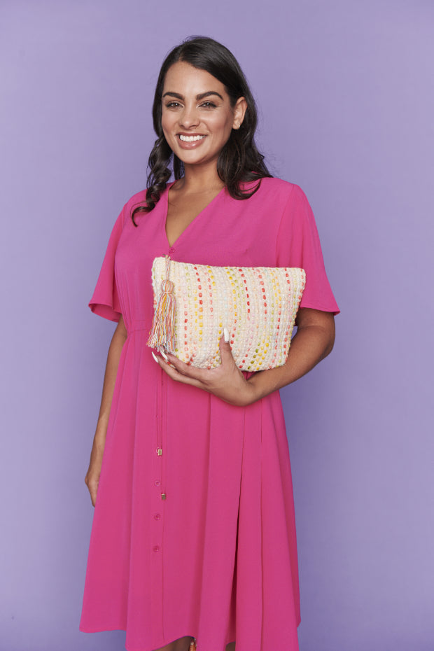 Refresh your wardrobe with our Spaced Out Ivory Stripe Clutch! This boho inspired piece can be dressed up with wedges, or dressed down with white sneakers for some fun in the sun! ☀️