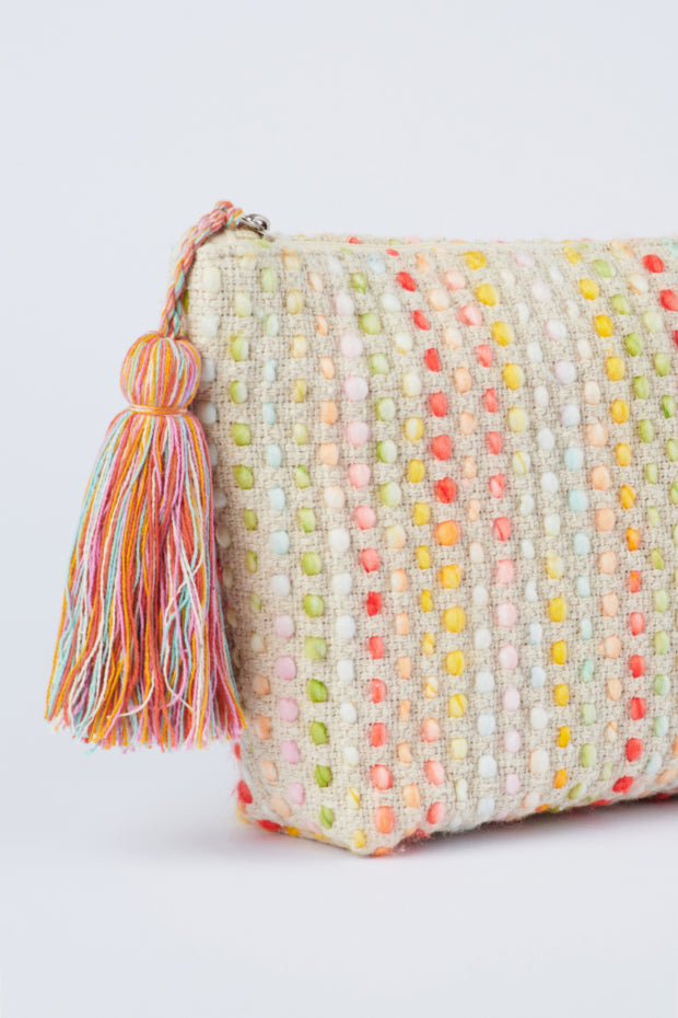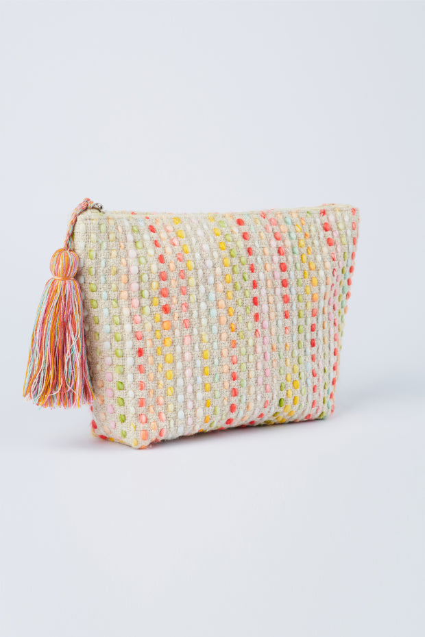 Featuring a handloomed clutch with zipper opening and tassel pull. The inside is fully lined with an inside pocket. You’re sure to turn heads whenever you step out with this beautiful accessory👝