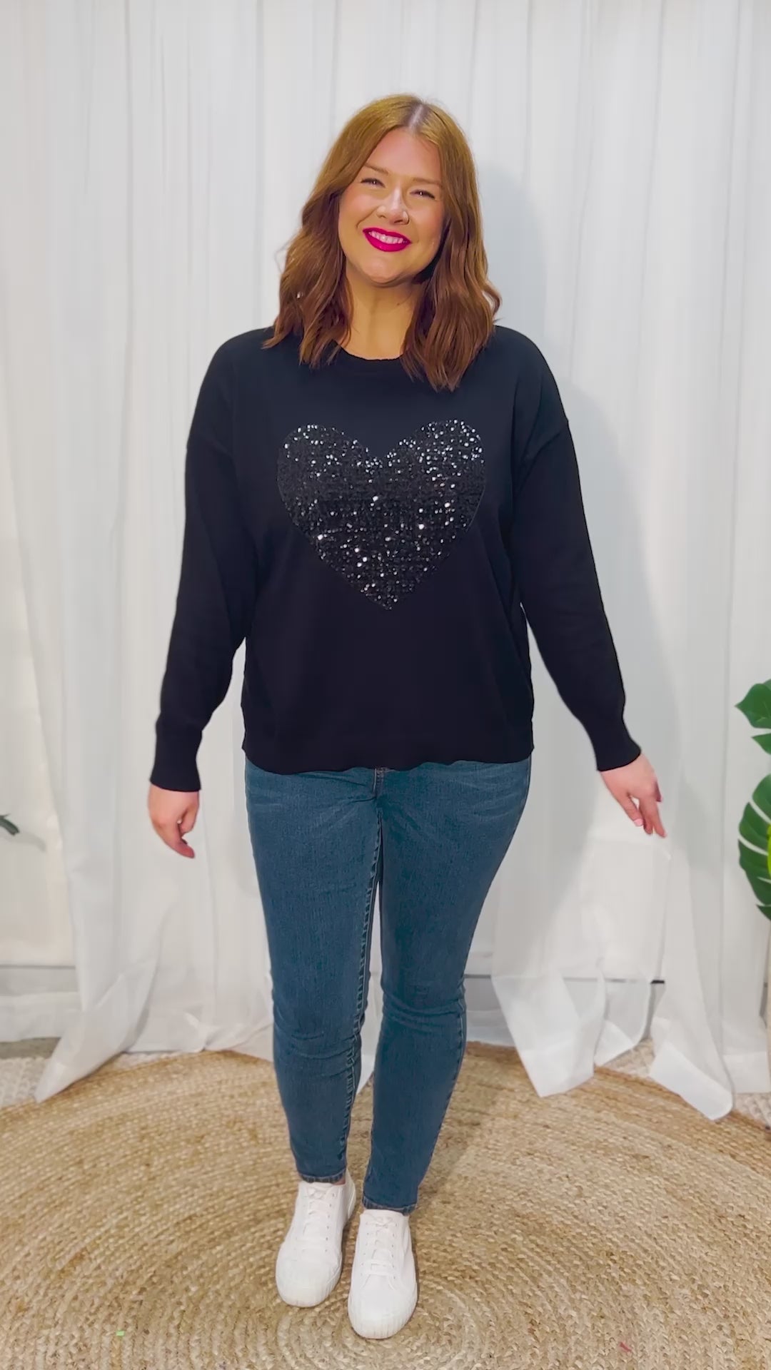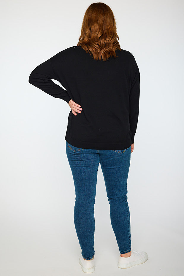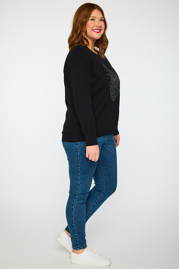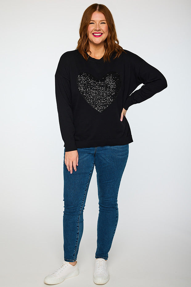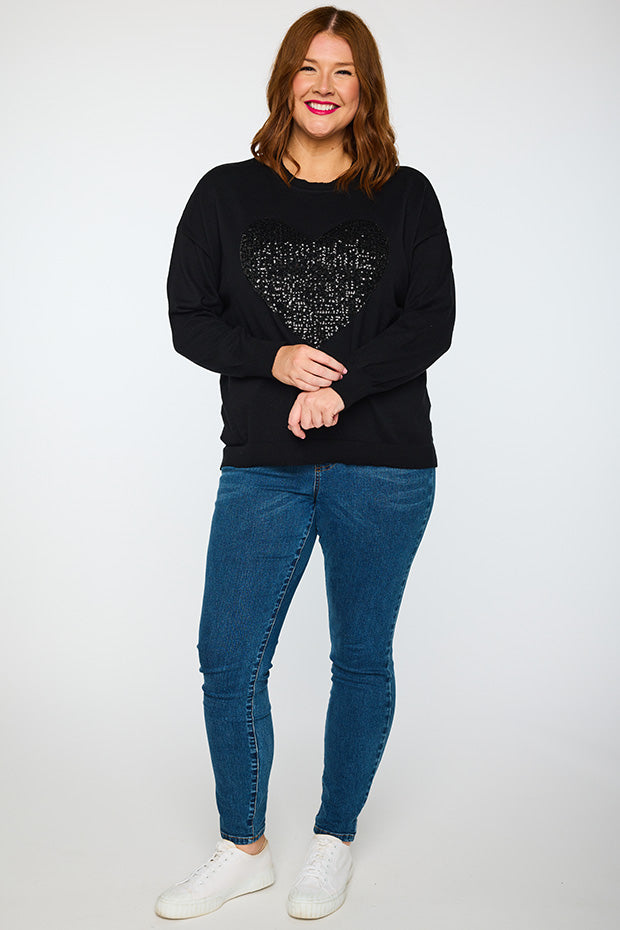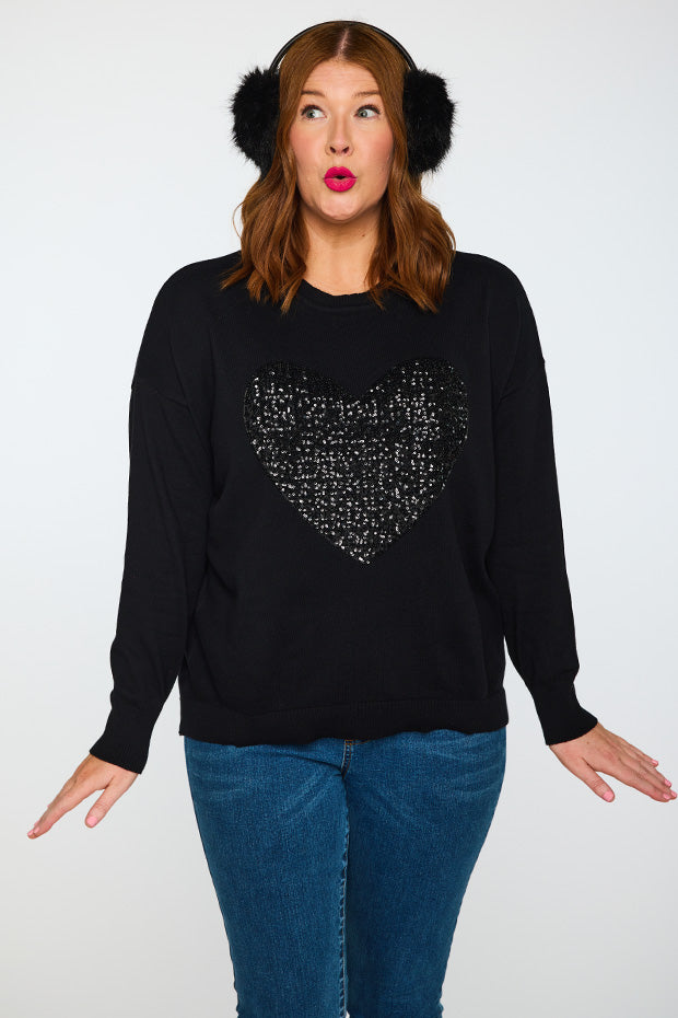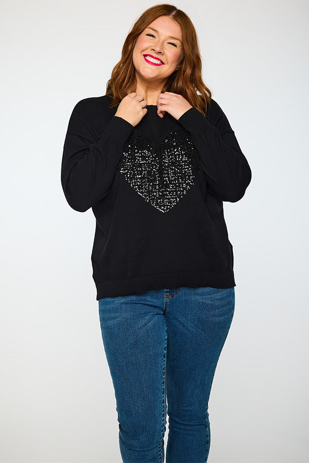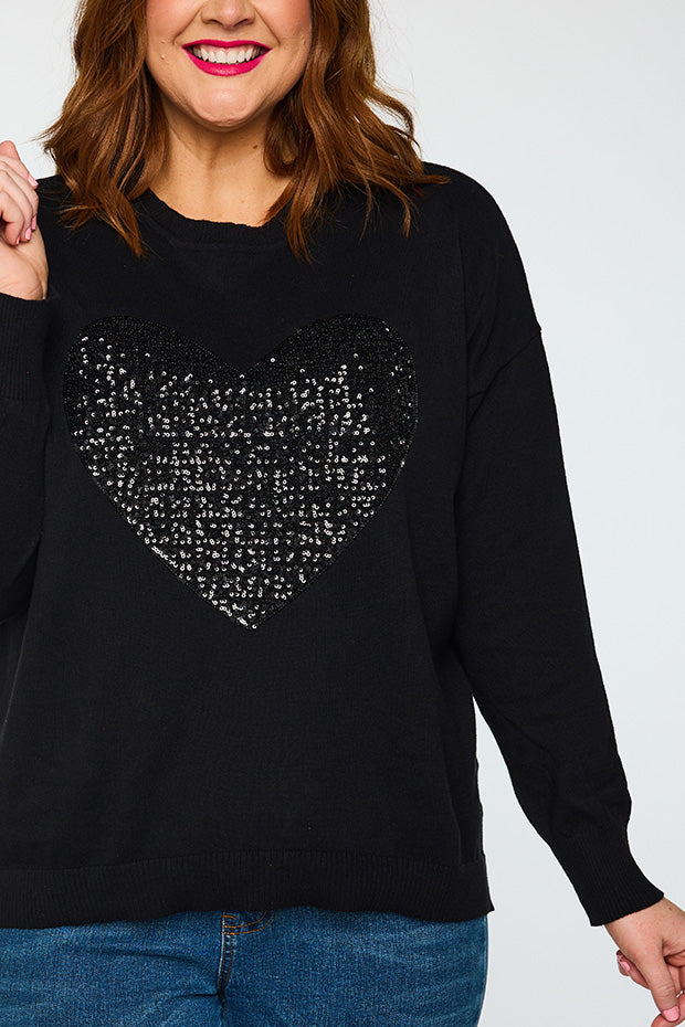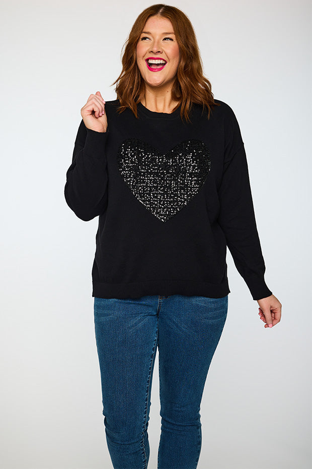 Add some bling to your wardrobe with our Sparkle Heart Black Knit