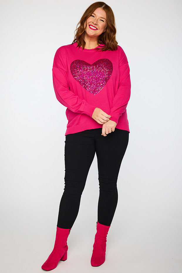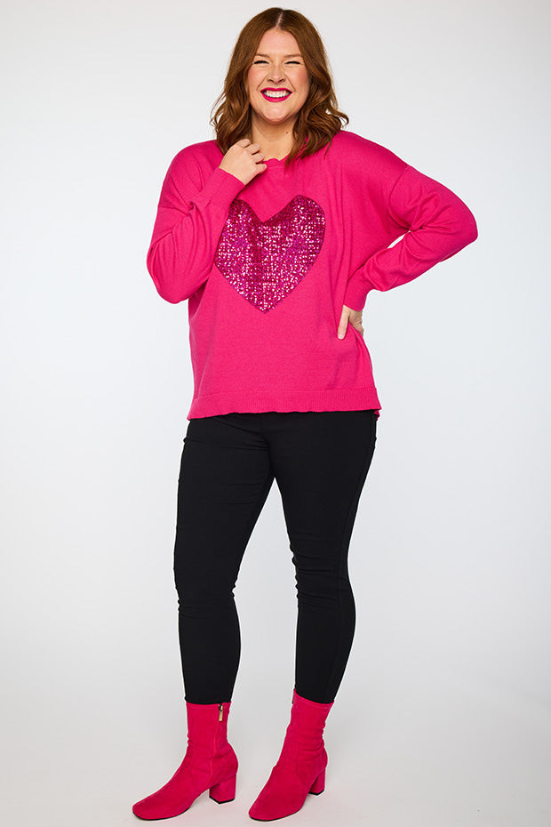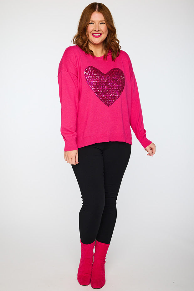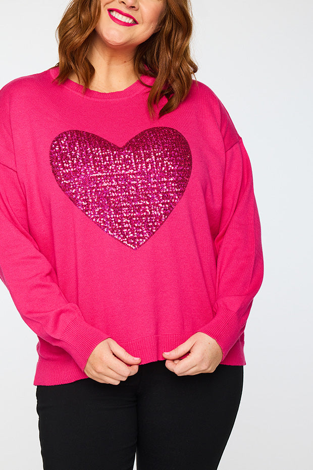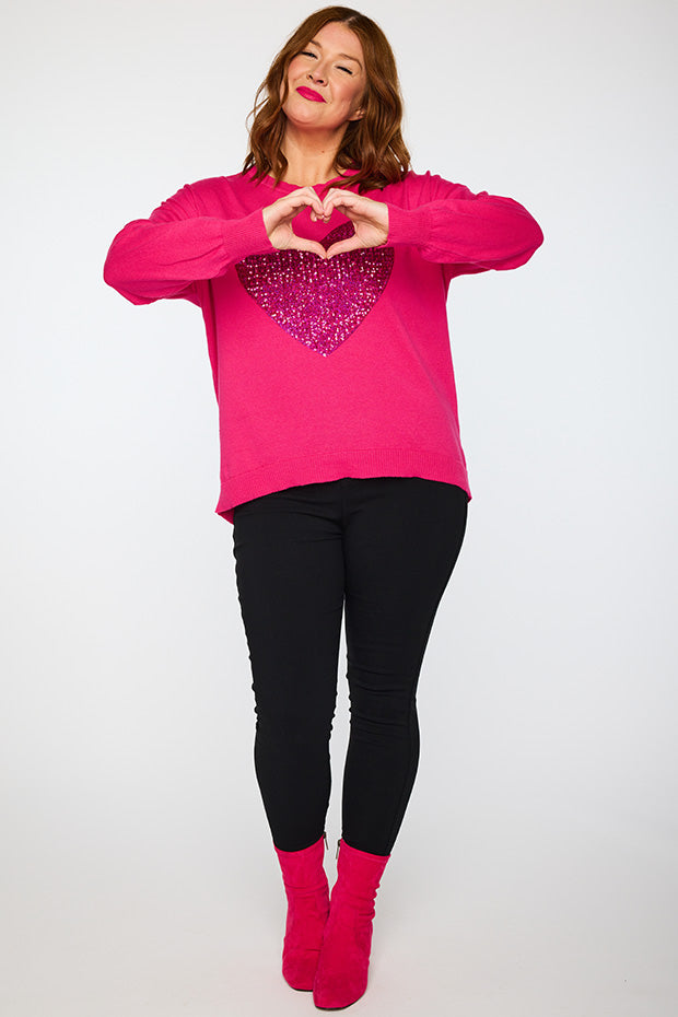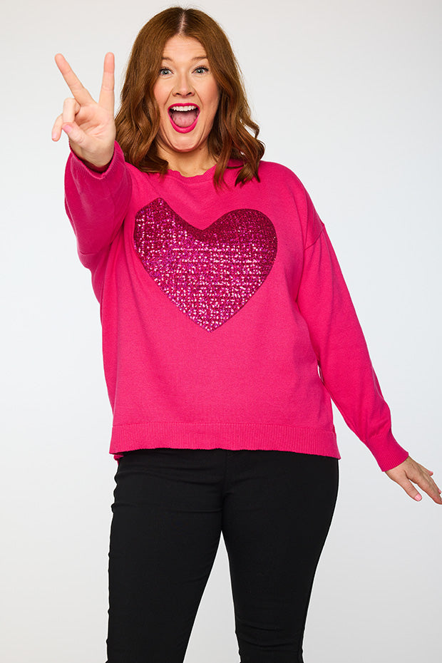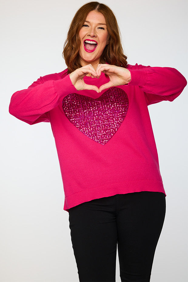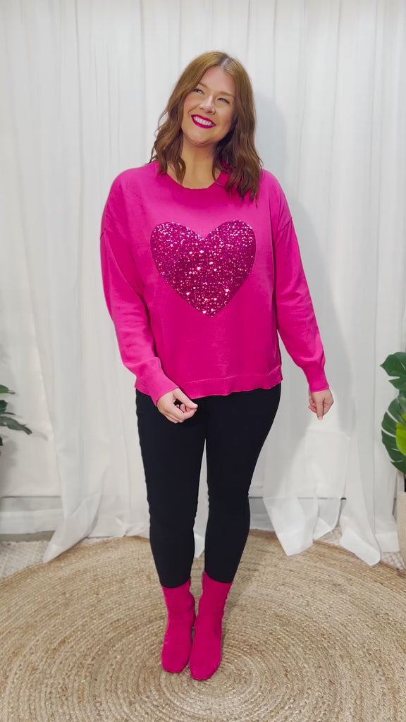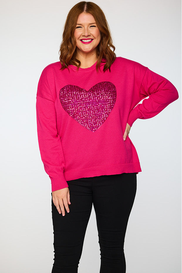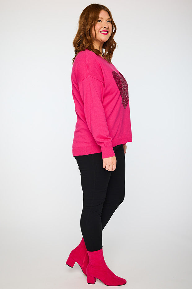 Add some bling to your wardrobe with our Sparkle Heart Pink Knit ✨