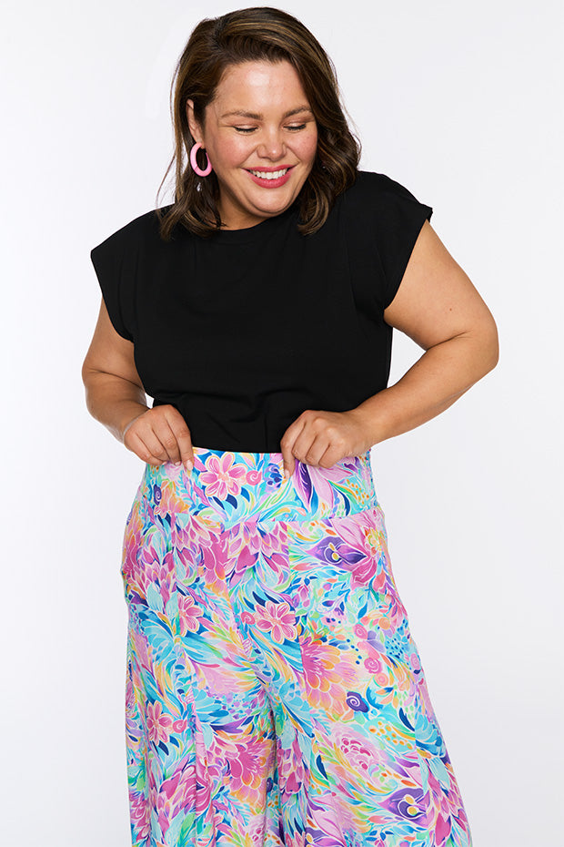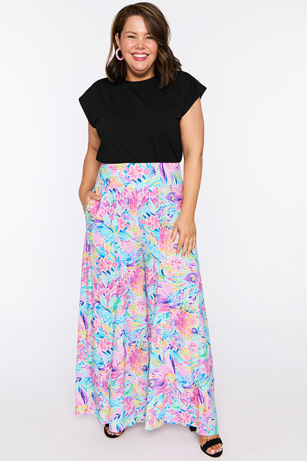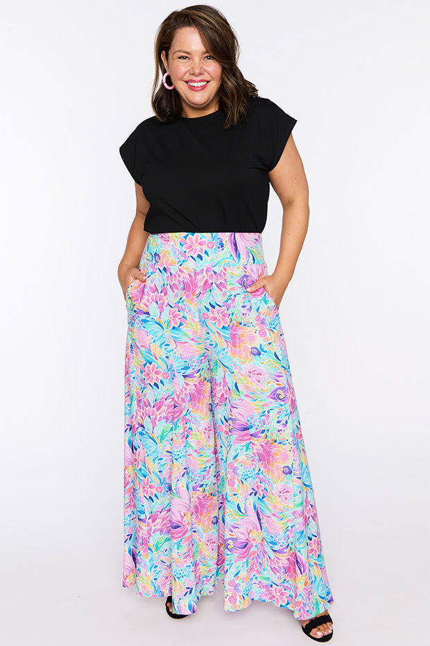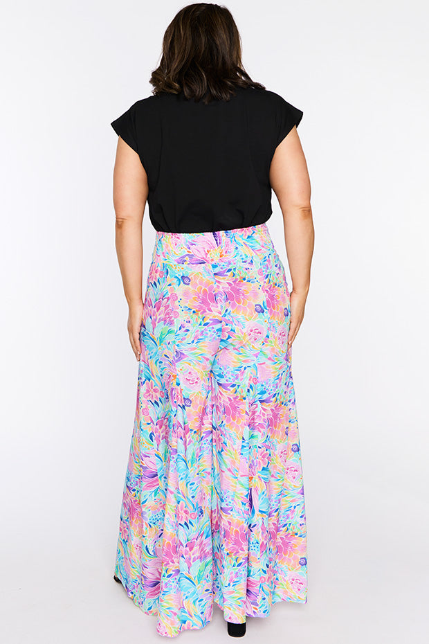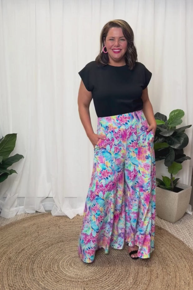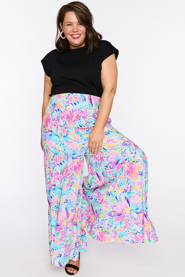 These Rainbow bloom pants are incredible. Perfect for work or style them up for an evening out! Recommend sizing down in these as the waist band has plenty of stretch!