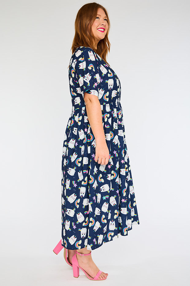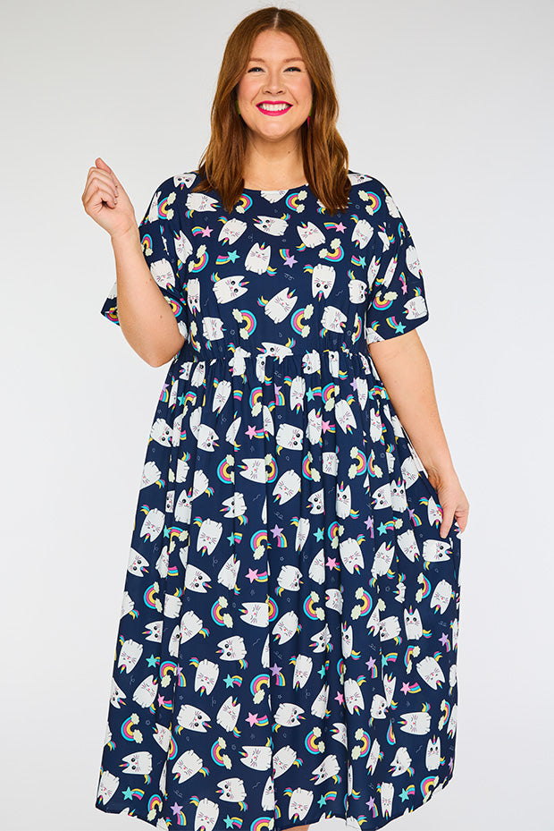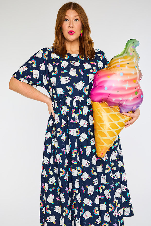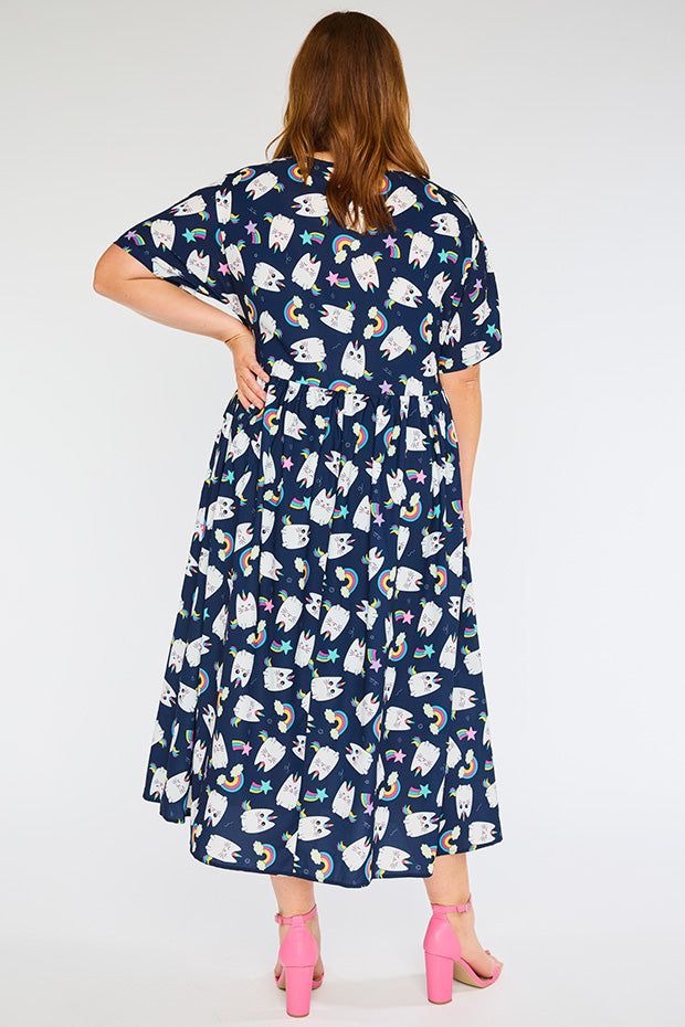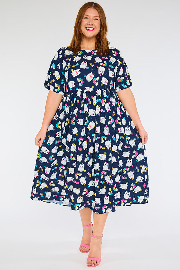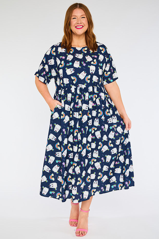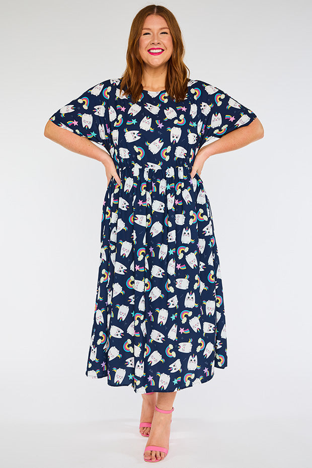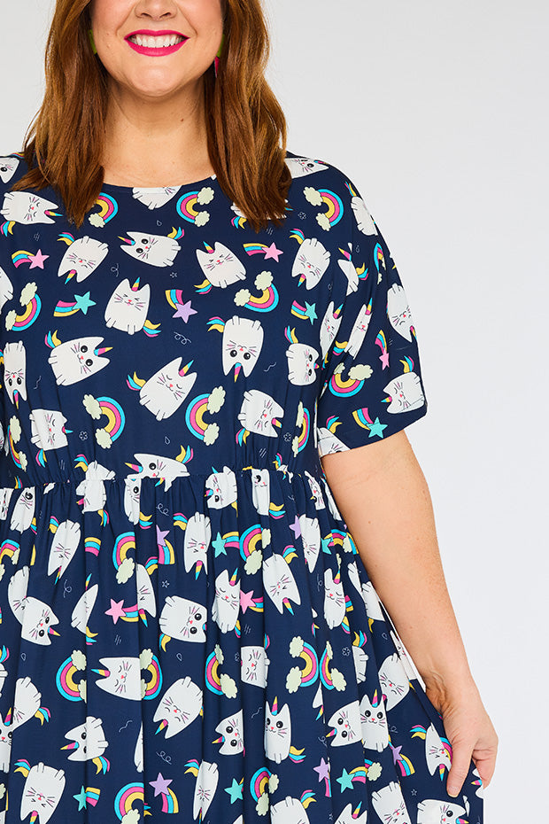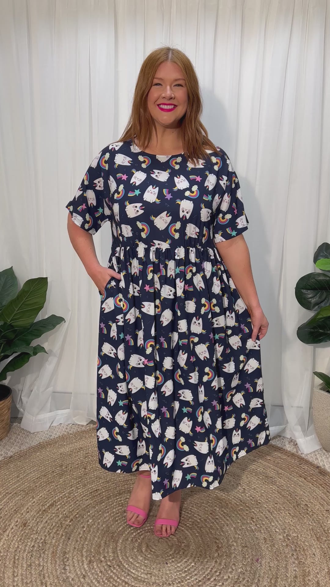 Such a gorgeous pattern perfect for any cat lover. Lovely light, wash and wear fabric typical of LPD. Very flattering style you can throw on anytime and covers up any bumps. Love it!