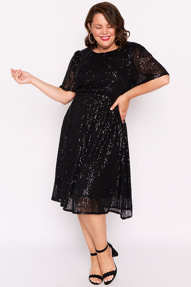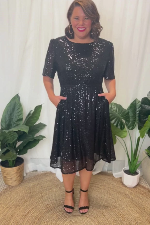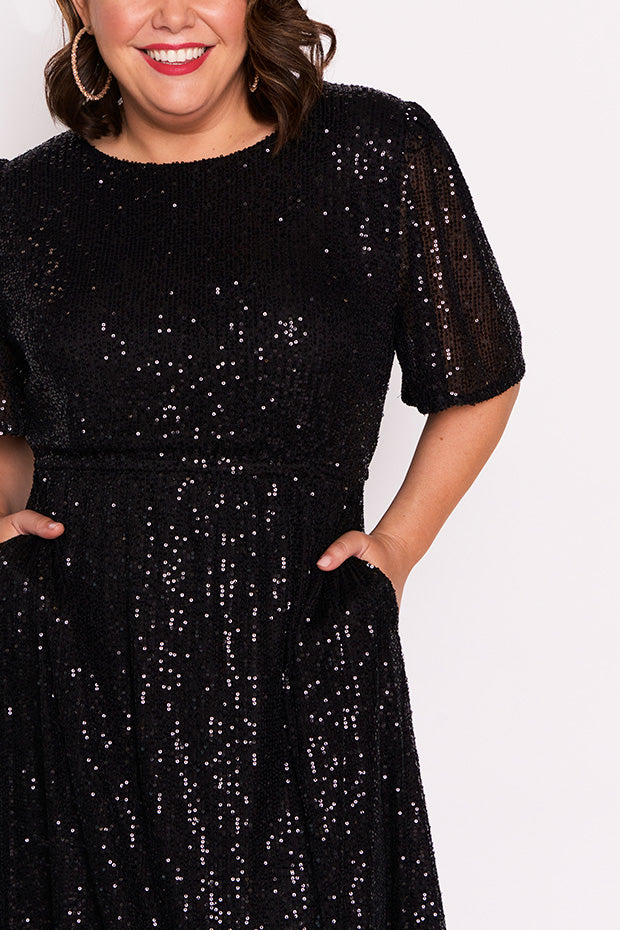 Sparkle into summer with our Tinsley Black Sequins Dress 🖤✨
