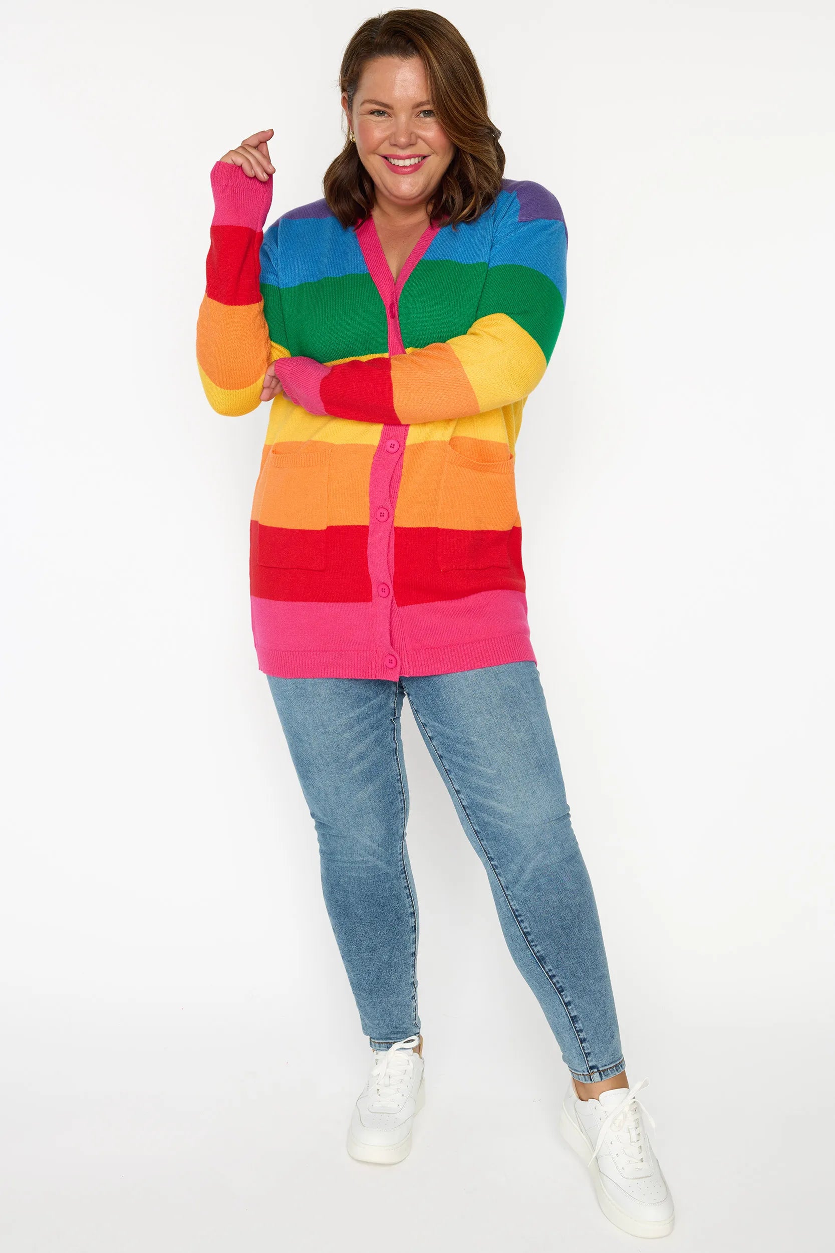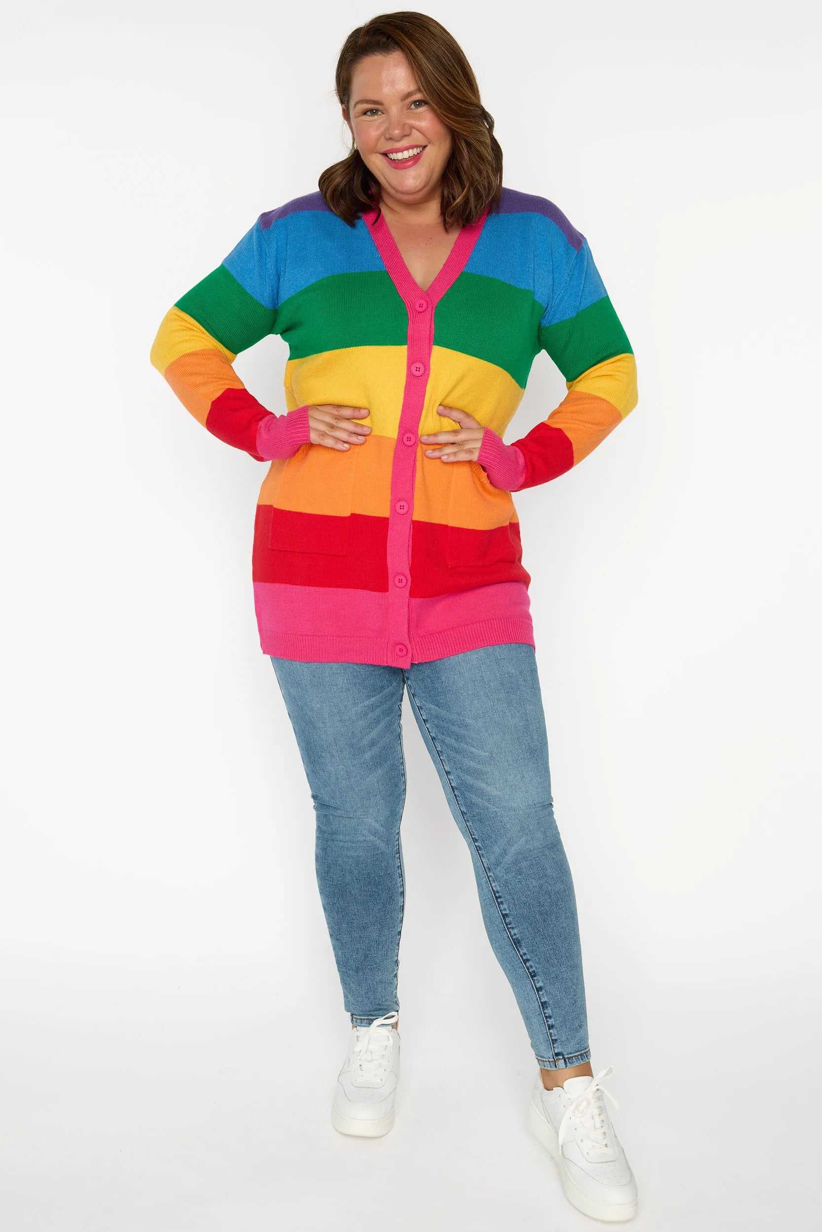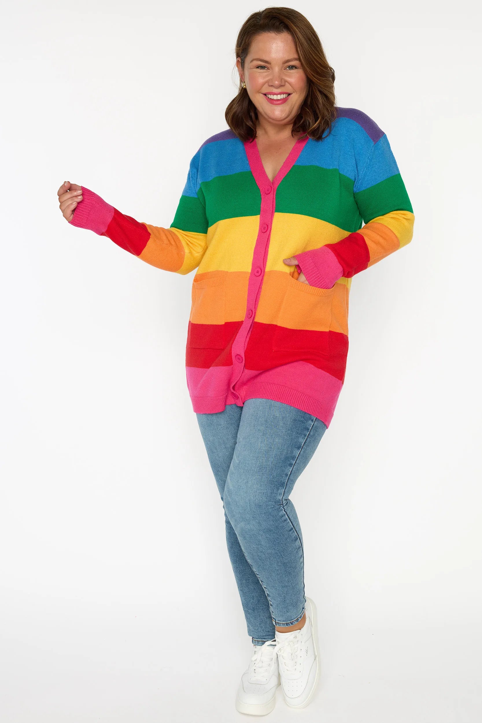 Vivid Rainbow Stripe Cardigan ๐