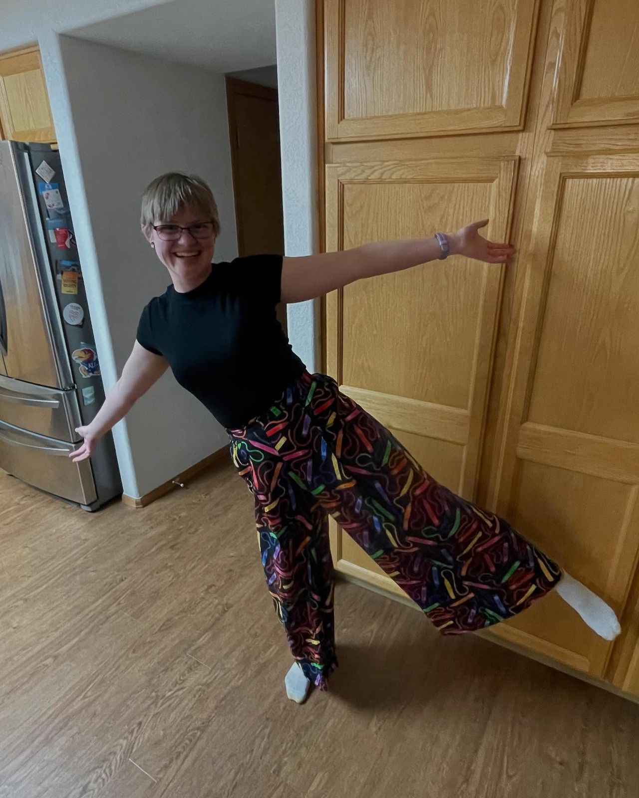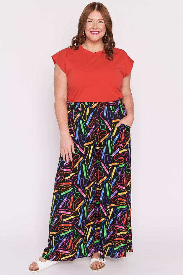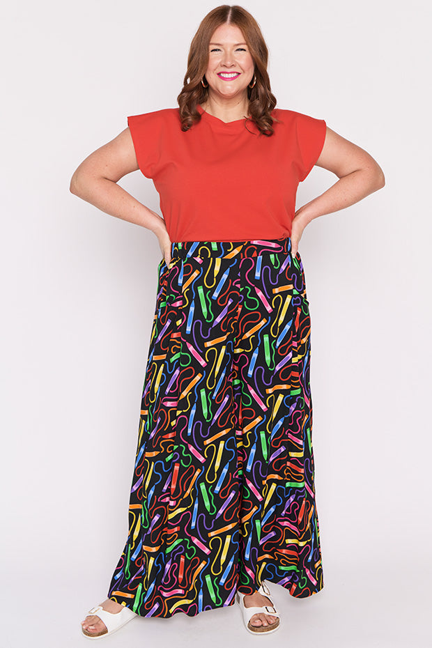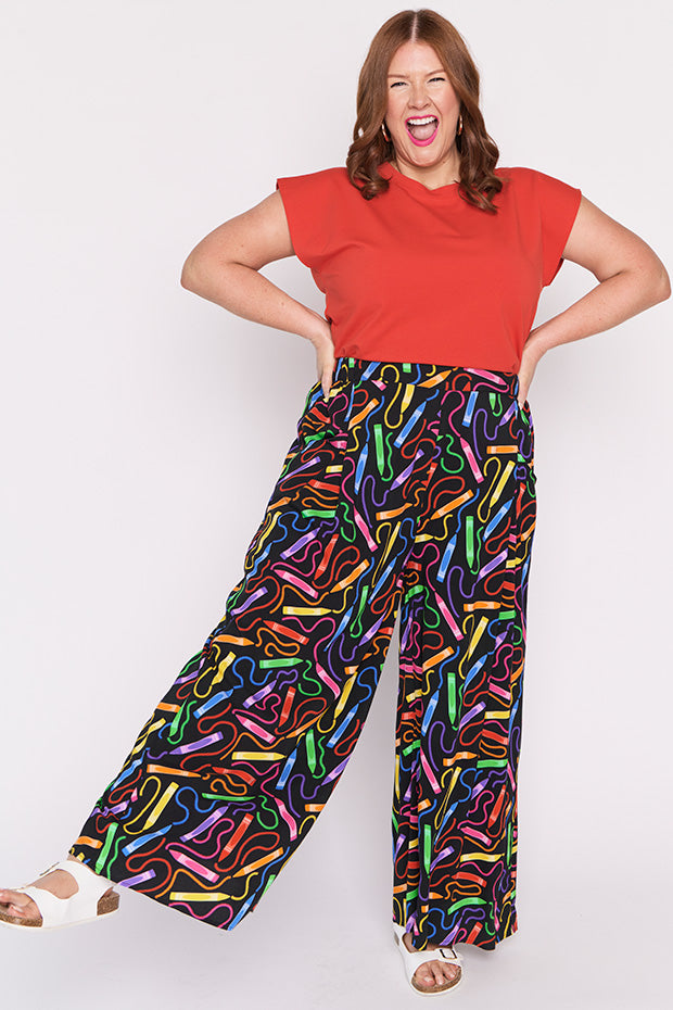 Absolutely love these pants, they are vibrant, fun & comfortable. I have received so many compliments from people when wearing these. They are a school teachers delight 😊