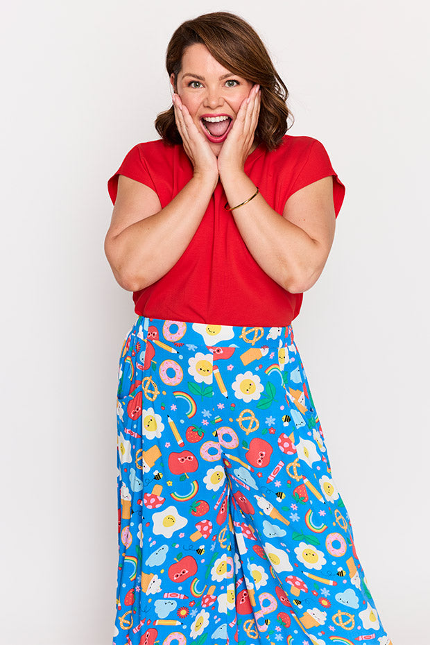 Bursting with charm, this Xane Pant features our Cute Things print exclusively designed by the fabulous Victoria Roberts! With its vibrant fun print and feel-good energy, it’s perfect for anyone who loves a pop of playfulness in their wardrobe. This piece is sure to spark smiles wherever you go.